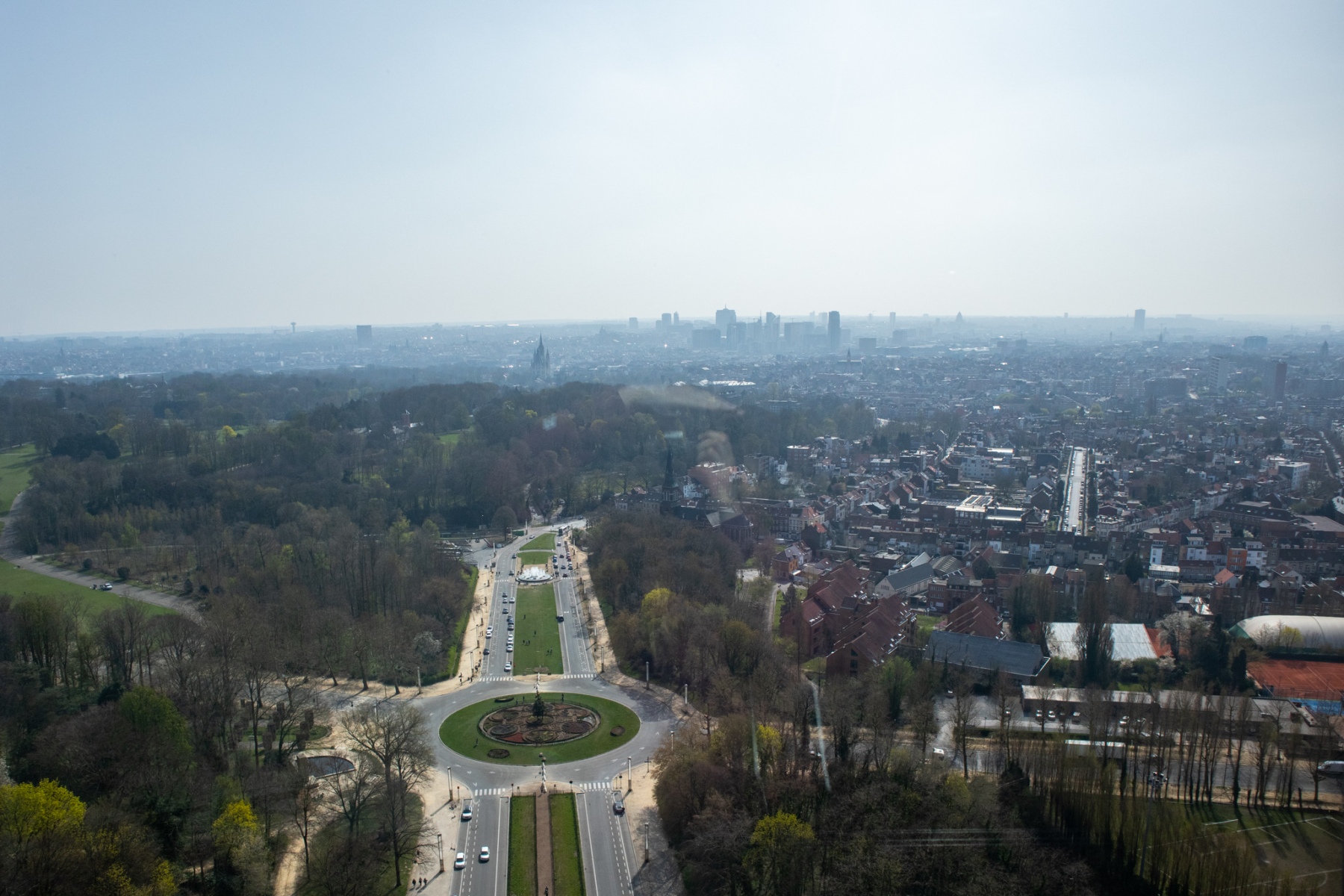 Výhľad z panorámy Atómia na mesto Brusel – na bulvár, ktorý sa nachádza pred Atómiom a na moderné výškové budovy v diaľke, kde sa nachádza i železničná stanica Bruxelles-Nord (foto: KUNSTARTUM)