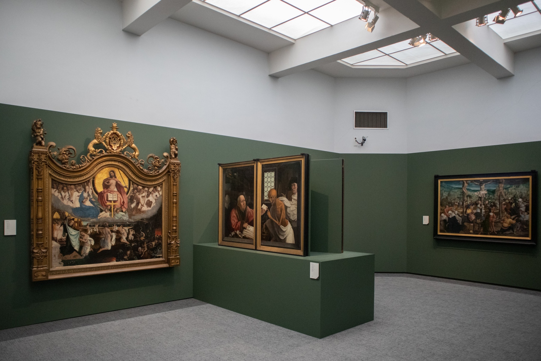 Zľava: Jan Provoost, Posledný súd, 1525, olej na paneli; Jan Provoost, Lakomec a smrť, 1515/1521, olej na paneli; Jan Provoost, Ukrižovanie, ± 1501/1505, olej na paneli (foto: KUNSTARTUM)