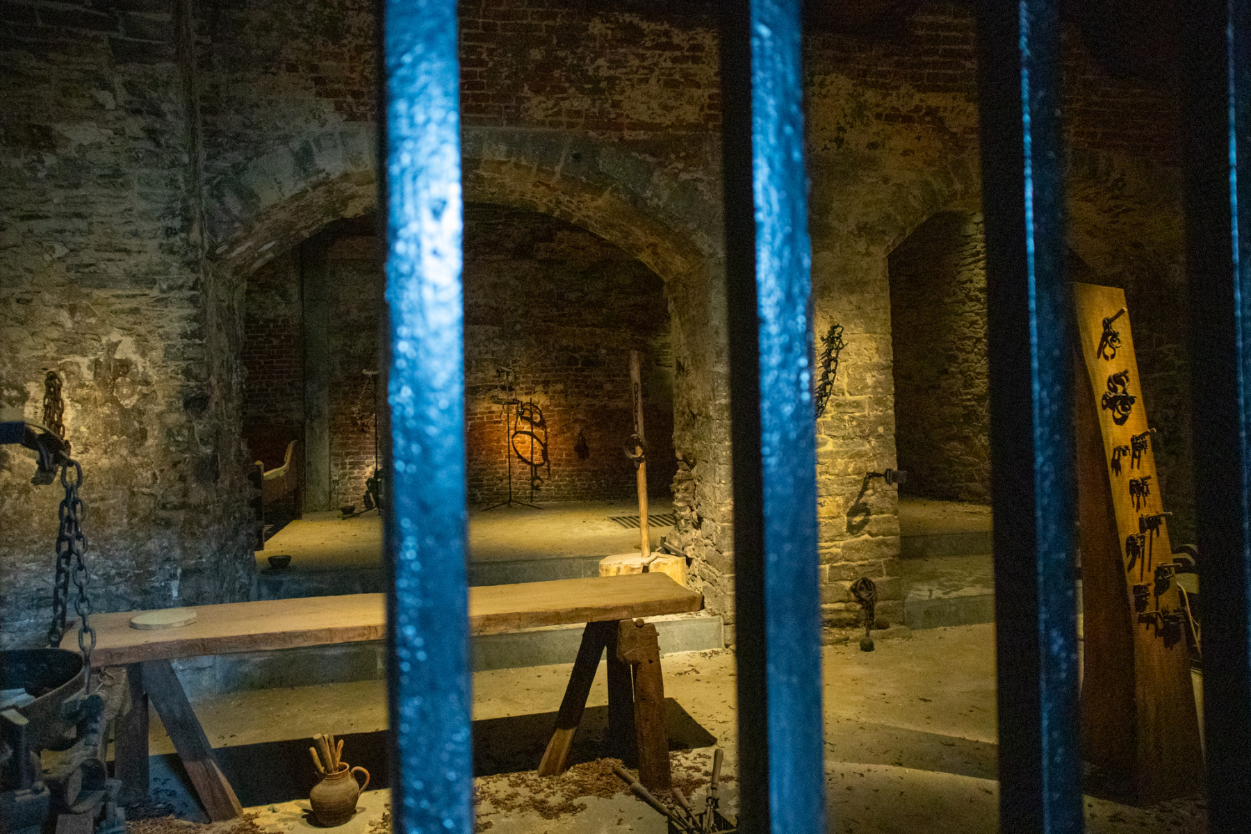 Nachádzalo sa tu takisto väzenie. Polopodzemné cely boli vlhké, s prievanom a veľmi chladné, najmä v zime. Najobávanejšie boli podzemné kobky a samozrejme mučenie, ktoré bolo využívané najmä po Flámskom koncile.