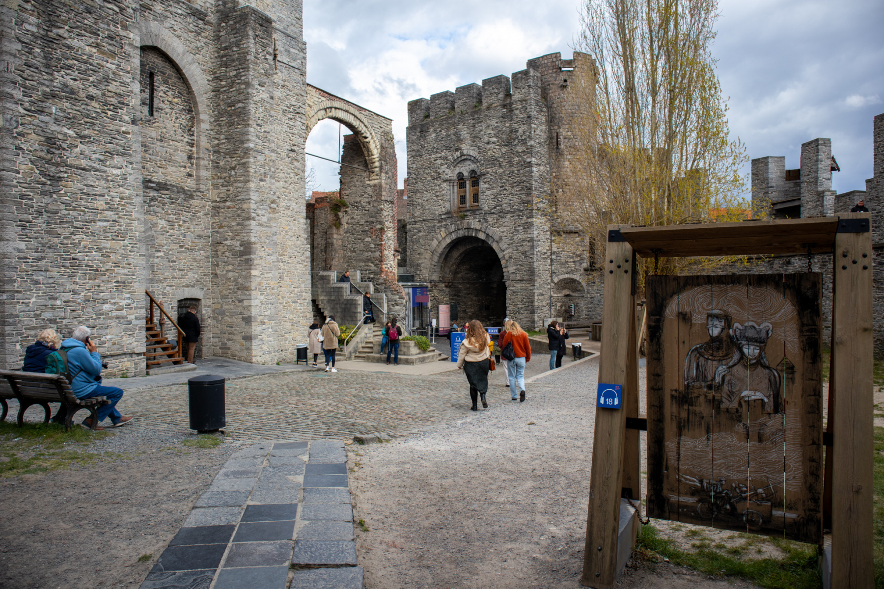 Nádvorie hradu Gravensteen s pohľadom na vstupnú bránu. V hradnom areály dopĺňajú audiosprievodcu aj ilustrácie od Randalla Casaera. (foto: KUNSTARTUM)
