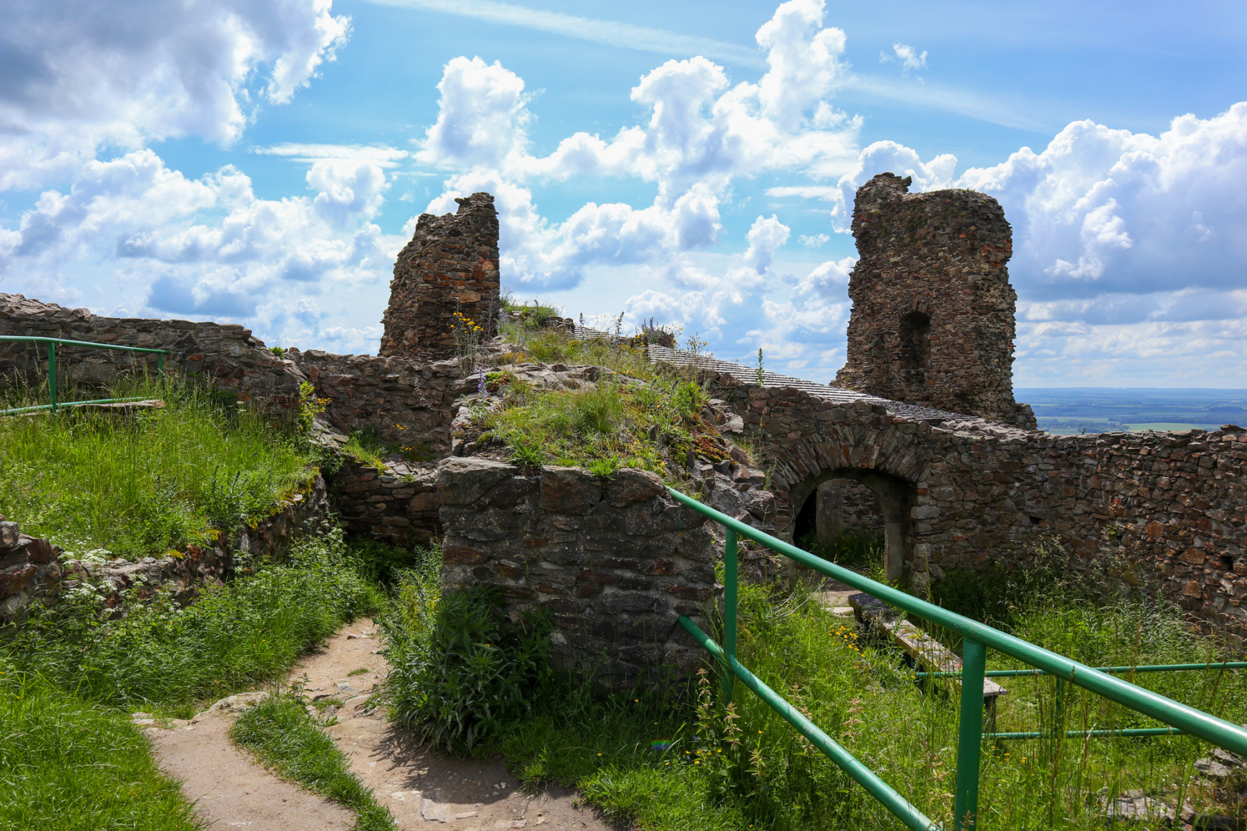 Ako prvé som vystúpila na rozhľadňu vytvorenej na ruine pôvodnej stredovekej veže, ktorá sa nachádzala po mojej pravici. Z nej sa mi naskytol nádherný výhľad na okolité dedinky, ale aj na Železné hory a Dívčí kameň, z ktorého podľa povesti o krutej Milade spadol nejeden rytier, ktorý sa uchádzal o jej ruku.