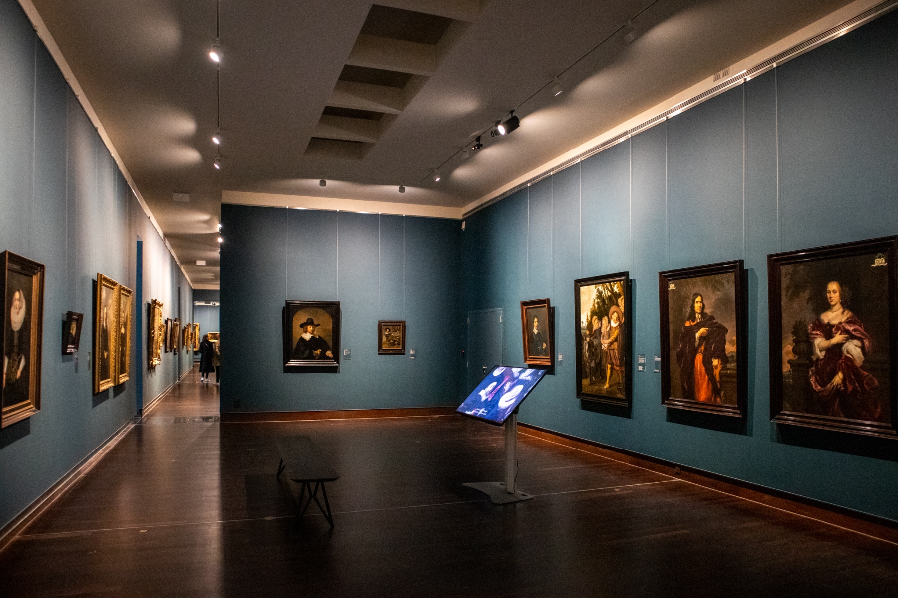 V prvej časti prvého poschodia, hneď oproti výťahom, sa nachádzajú diela najmä nizozemských maliarov. Hneď prvá miestnosť sa môže pýšiť dielami od Rembrandta a Halsa. Sú v nej vystavené portréty – samostatné, či skupinové, nielen od už spomenutých umelcov.