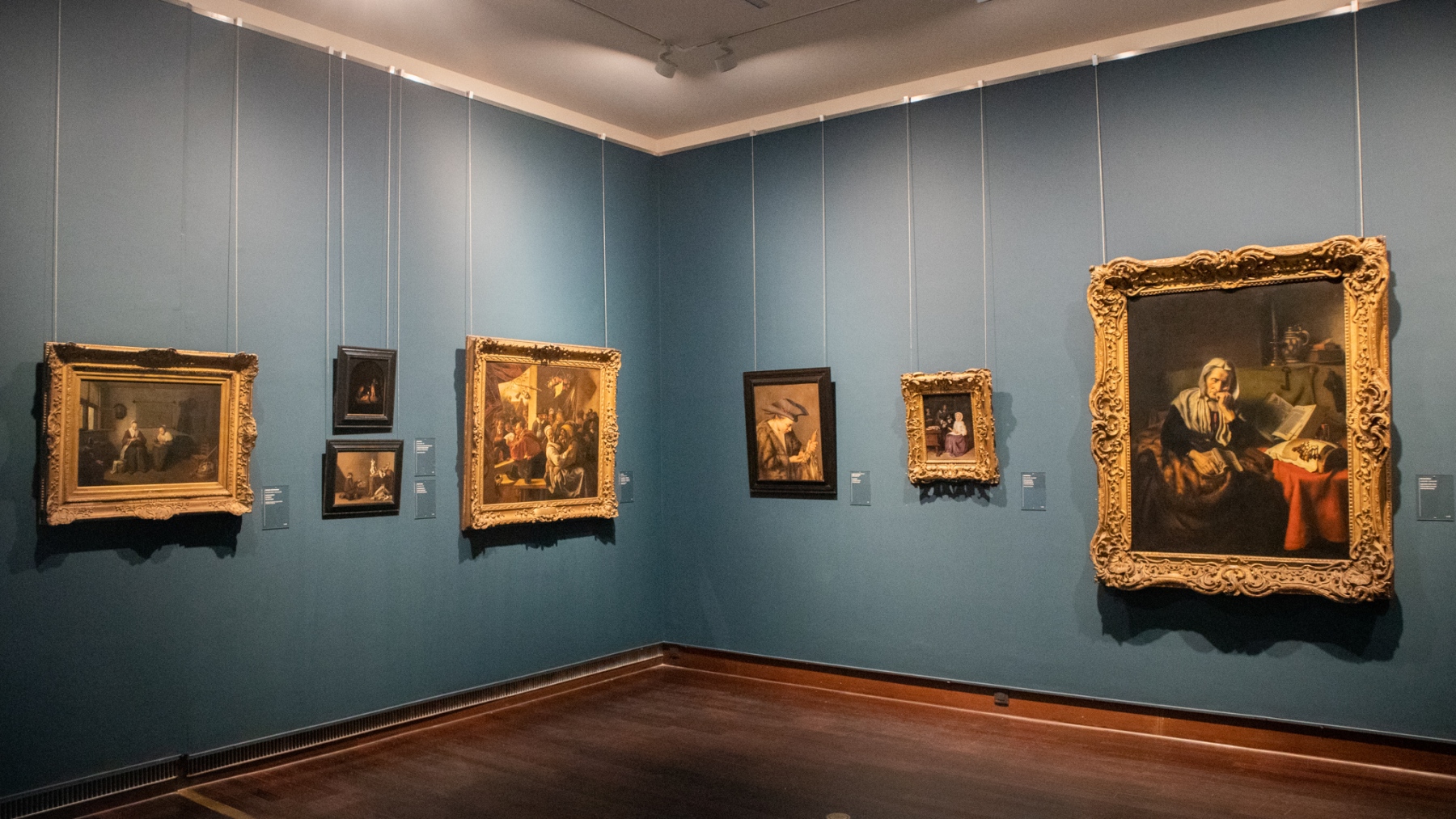 V prvej časti prvého poschodia, hneď oproti výťahom, sa nachádzajú diela najmä nizozemských maliarov. Hneď prvá miestnosť sa môže pýšiť dielami od Rembrandta a Halsa. Sú v nej vystavené portréty – samostatné, či skupinové, nielen od už spomenutých umelcov.