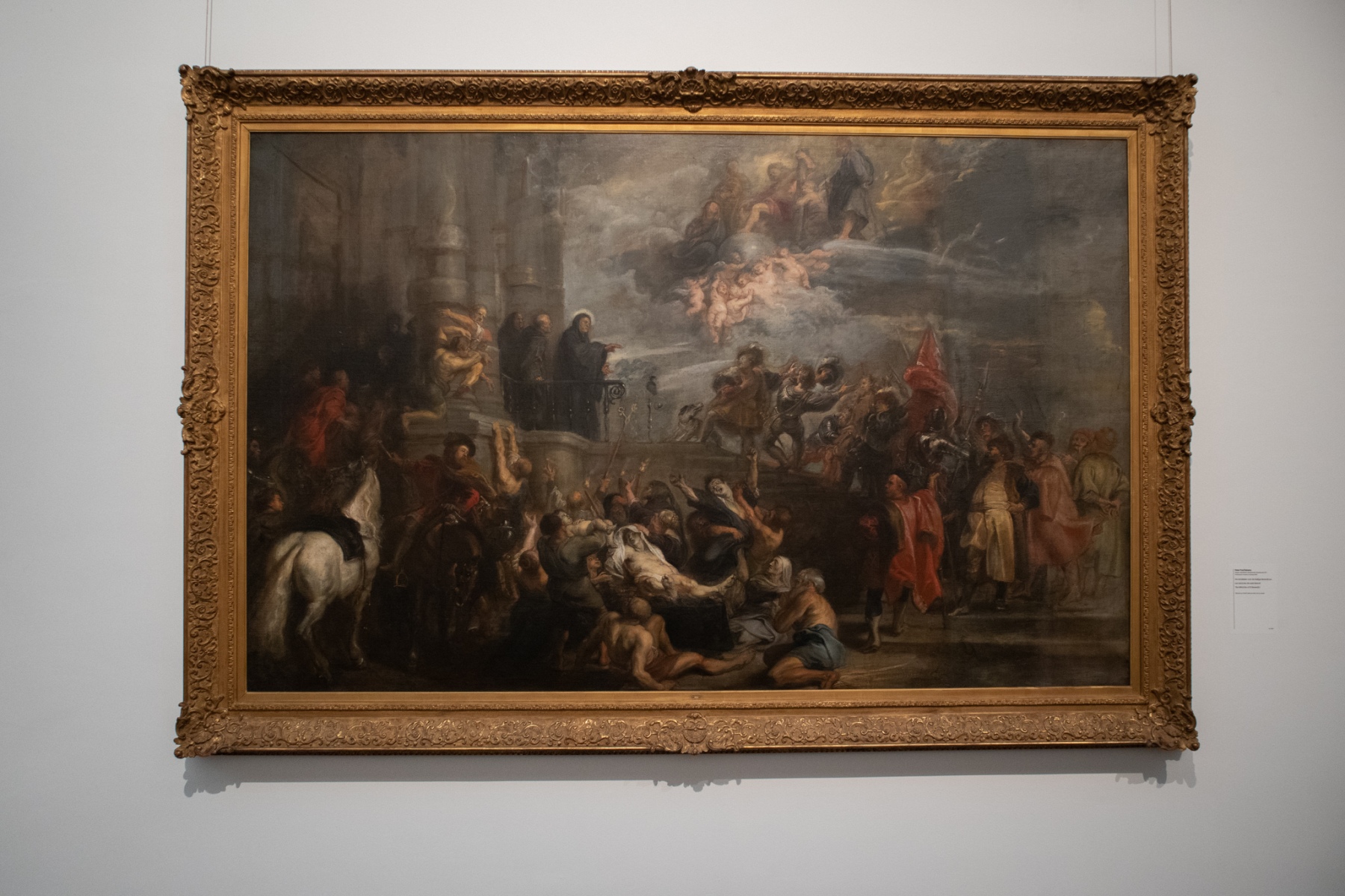 V ďalšej miestnosti nachádzam veľkolepé náboženské obrazy z Rubensovej dielne. Hra so svetlom a farbami, komplikované pózy postáv a ich kompozícia – to všetko podčiarkuje dramatickosť zobrazených výjavov.