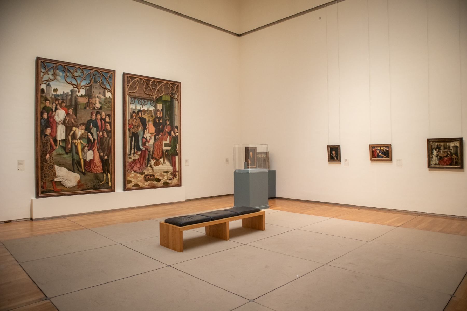Vraciam sa naspäť do otvoreného priestoru galérie, kde sú zväčša maľby s náboženskými motívmi a žánrové obrazy. Medzi najvýznamnejších zastúpených maliarov tu patrí Lucas I. Cranach s dielami Adam a Eva. Za zmienku stojí aj triptych z dielne Hieronyma Boscha: Pokušenie svätého Antona s fantazijným zobrazením scény a bytostí. Záver expozície Starí majstri ukončujú diela flámskych primitívov.