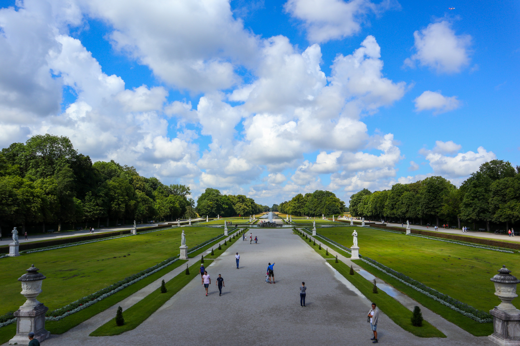 Zámocký komplex Nymphenburg som navštívila prvýkrát v jedno nedeľné júlové predpoludnie ešte v roku 2020. Priľahlý park je obľúbeným miestom bežcov, ktorí sa v ňom nachádzali hneď ráno. Pri kúpe lístkov som zistila, že prehliadky tu nie sú so sprievodcom prístupné z hygienických predpisov kvôli pandémii korona vírusu, ale ponúkli mi ako náhradu audio-sprievodcov dostupných vo svetových jazykoch (audio-sprievodcovia však ostali aj po pandémii). Prehliadku som teda absolvovala s audio-sprievodcom, na ktorého som musela chvíľu čakať. Krátke čakanie som vyplnila prechádzkou vo francúzskych záhradách.