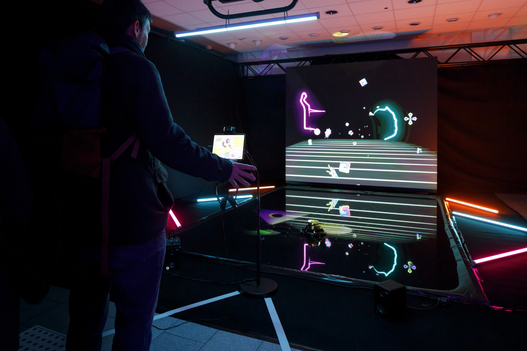 Die Bildmaschine: (Your) Wave of Light, 2024, svetelno-hudobná interaktívna projekcia/inštalácia, RE.LIGHT festival, M26, Regensburg (foto: KUNSTARTUM)