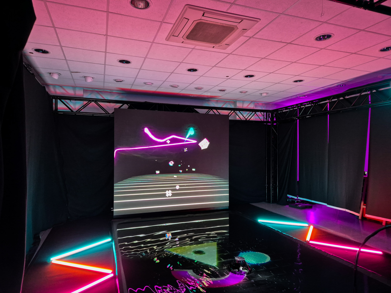 Die Bildmaschine: (Your) Wave of Light, 2024, svetelno-hudobná interaktívna projekcia/inštalácia, RE.LIGHT festival, M26, Regensburg (foto: KUNSTARTUM)