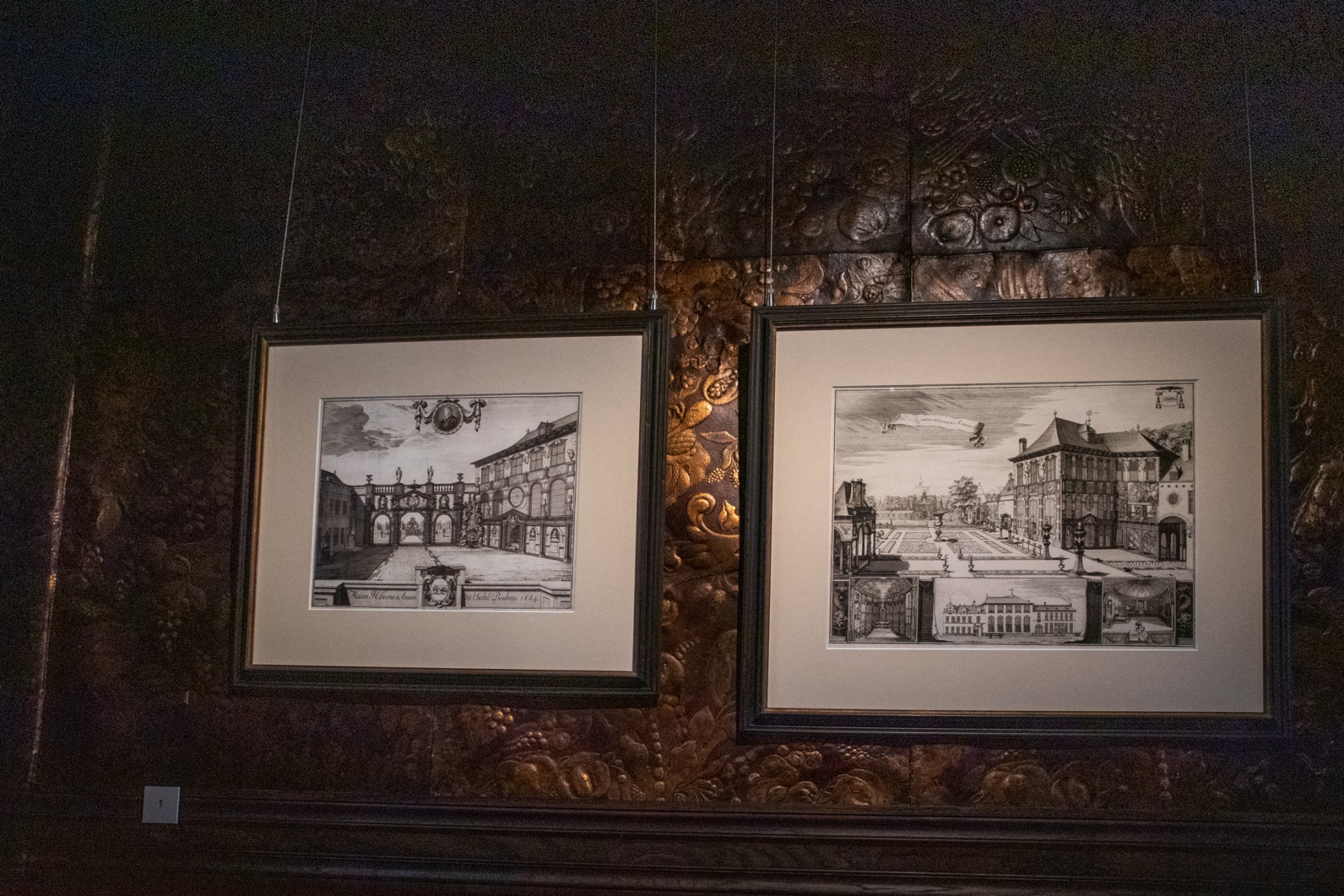 Po ľavej strane, medzi zátišiami nad kozubom bola vystavená olejomaľba od Jana I. Brueghela: Arcivojvodovia Albrecht a Isabella v záhrade svojho zámku Coudenberg v Bruseli. Tento panel zobrazuje arcivojvodov na prechádzke v parku ich bruselského paláca. Prečo je však tento pár v Rubensovom dome tak významný? Lebo arcivojvodovia Albrecht a jeho manželka Isabella v maliarových časoch vládli južnému Holandsku v mene španielskeho kráľa. Krátko po Rubensovom návrate z Talianska v roku 1608 dostal miesto ich dvorného maliara v Bruseli. Nezvyčajne mu však bolo umožnené zostať v Antverpách. Neskôr plnil aj diplomatické objednávky pre samotnú Isabellu.
