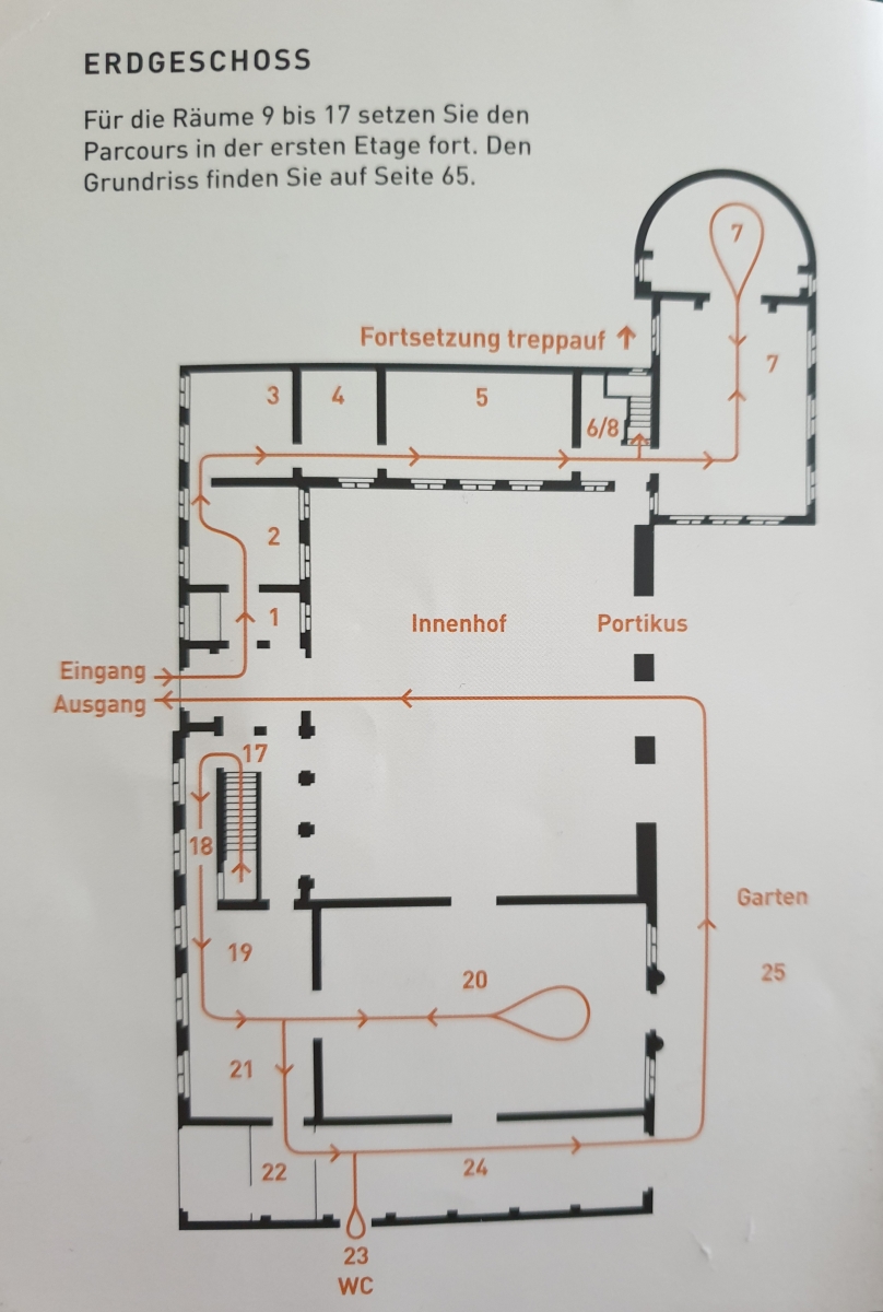 Pôdorys prízemia Rubensovho domu s vyznačením prehliadkového okruhu (foto: z brožúry ©Rubenshuis 2021)