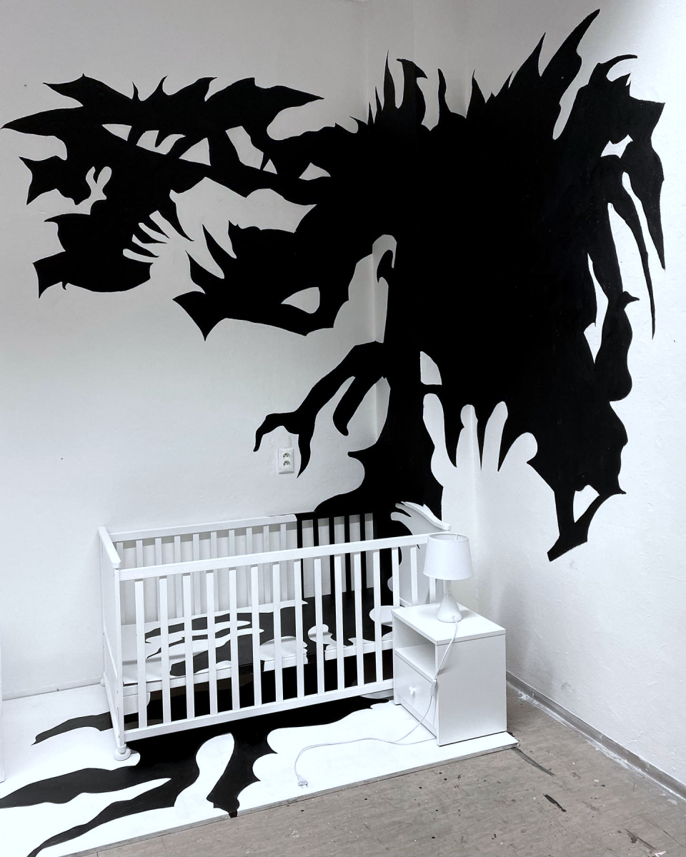 Barbora Lovíšková: Dobrú noc, 2022, inštalácia k autorskej knihe (foto: archív Barbora Lovíšková)