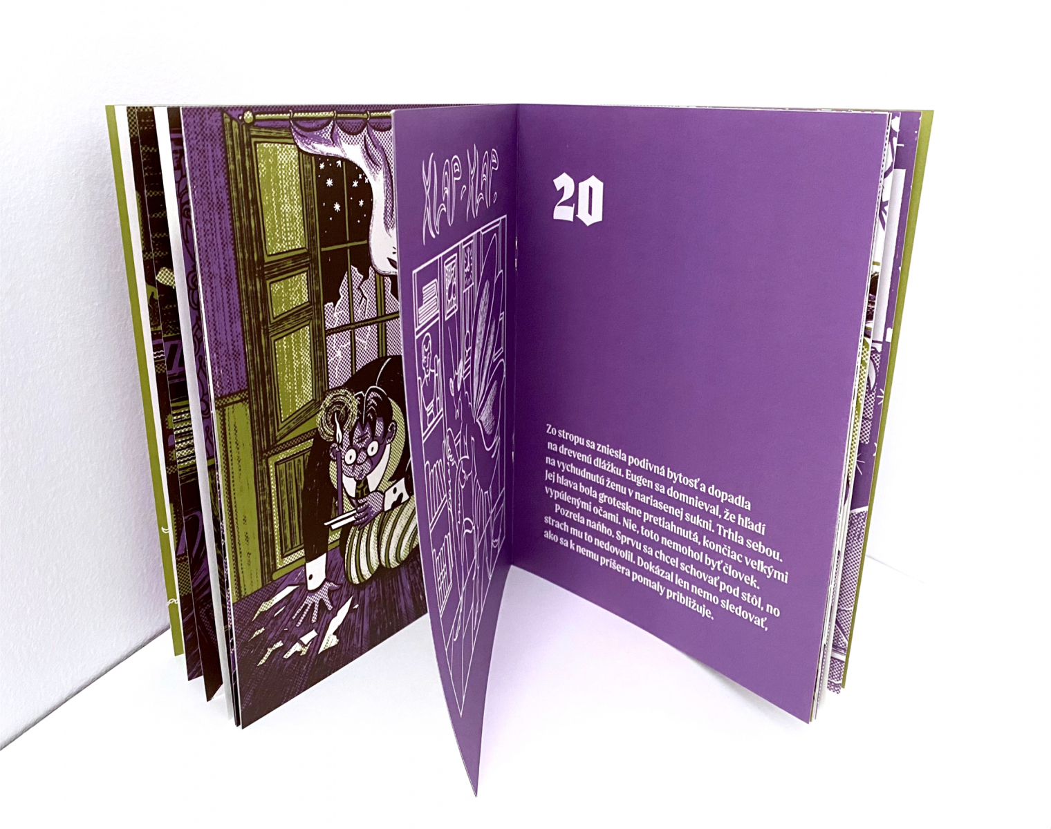 kafkovský príbeh Eugena a jeho entomologickej zbierky chrobákov. Pri jeho ilustrovaní som sa inšpirovala dobovými fotografiami secesného Nemecka, typografiou a najmä historickými zbierkami skutočných entomológov.