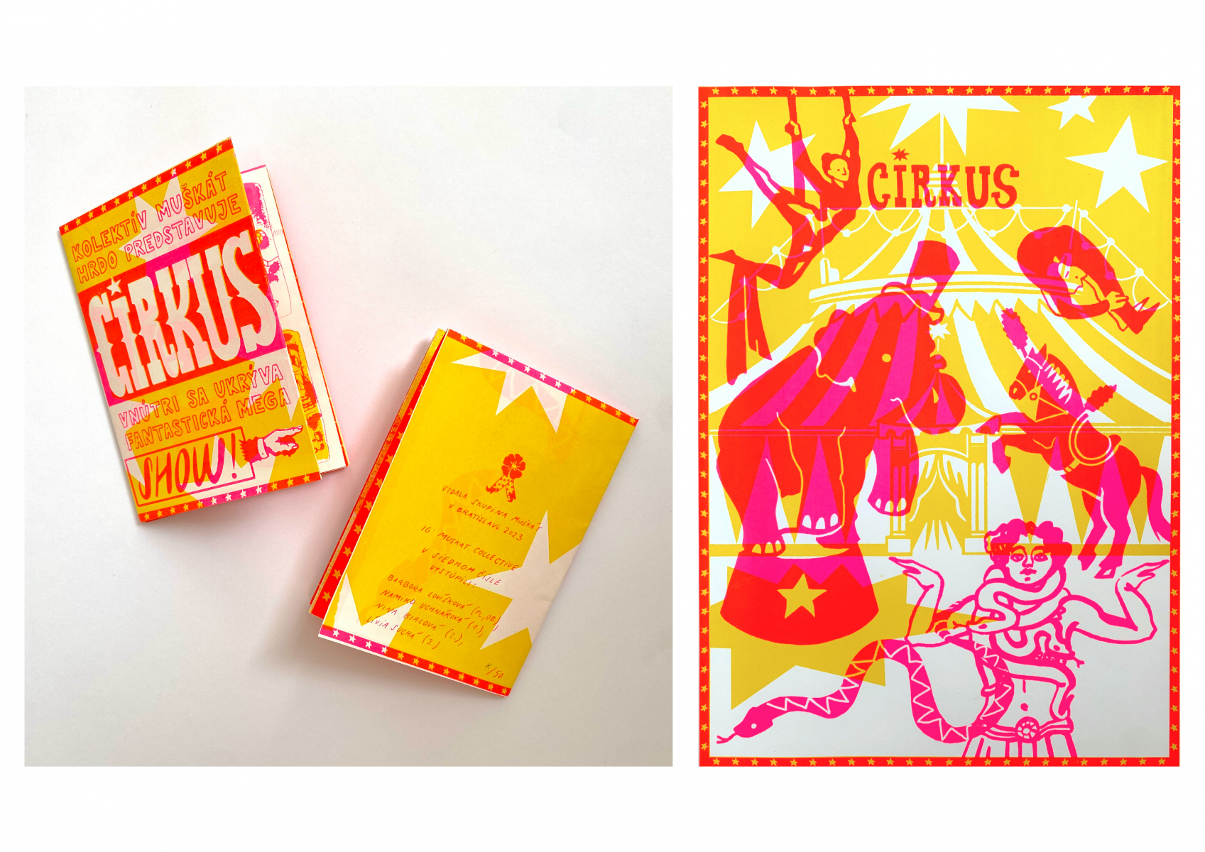 Kolektív Muškát: Cirkus, 2023, zin – serigrafia, 29,7×42 cm (foto: archív Barbora Lovíšková)