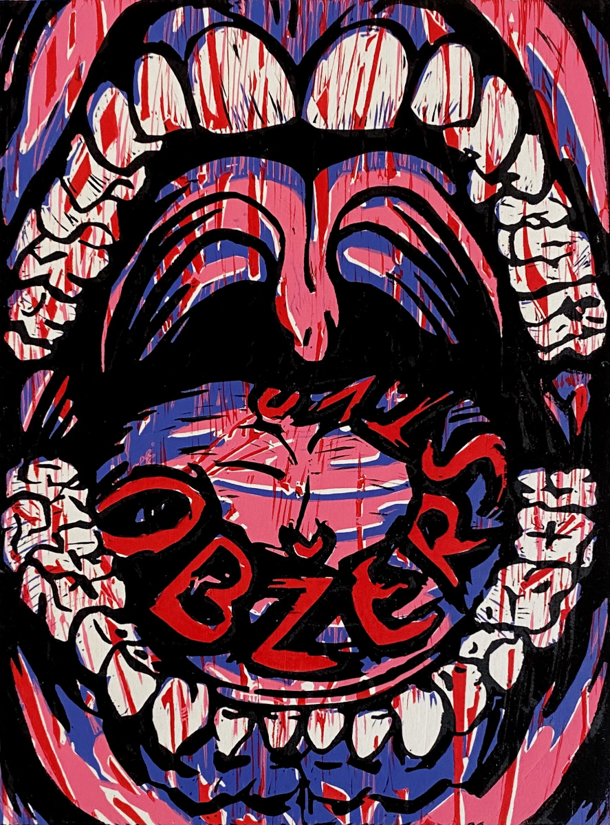 Kolektív Muškát: Cirkus, 2023, zin – serigrafia, 29,7×42 cm (foto: archív Barbora Lovíšková)