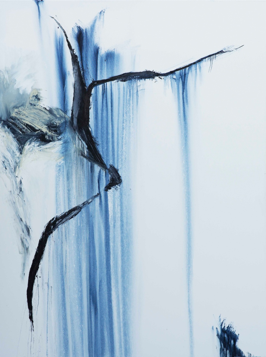 Tvoje obrazy sú prevažne monochromatické, v tmavých odtieňoch, kde dominuje najmä čierna, modrá a biela. Podľa čoho volíš farebnosť svojich obrazov? Symbolizuje prípadne farebnosť tvojich obrazov niečo?