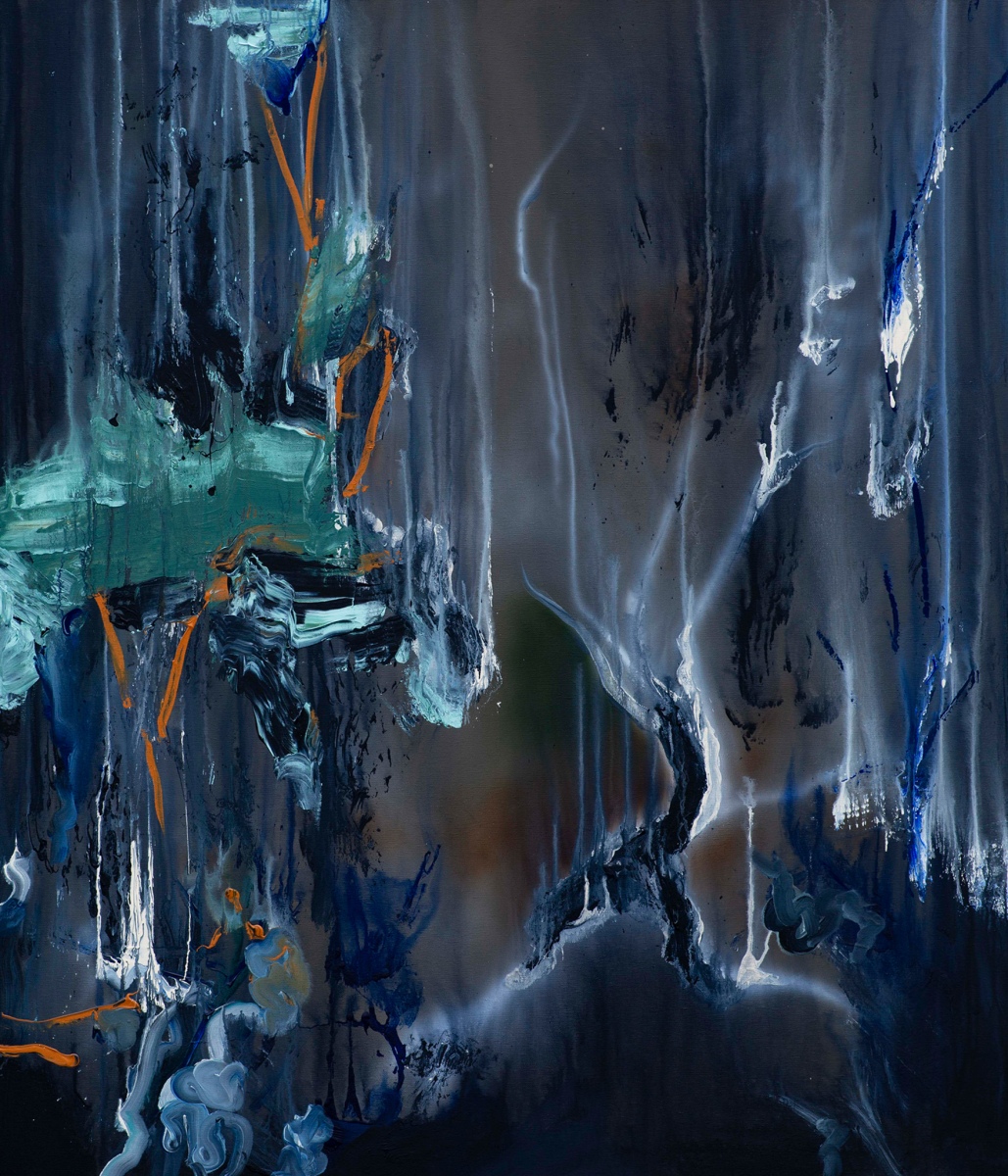 Tvoje obrazy sú prevažne monochromatické, v tmavých odtieňoch, kde dominuje najmä čierna, modrá a biela. Podľa čoho volíš farebnosť svojich obrazov? Symbolizuje prípadne farebnosť tvojich obrazov niečo?