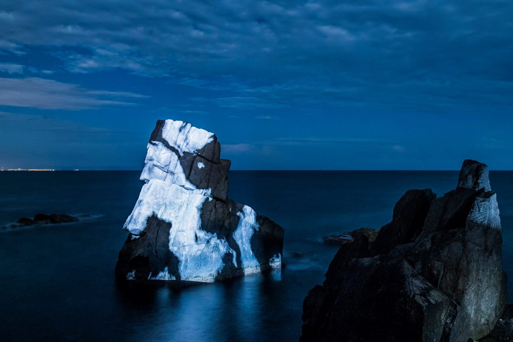 Videomapping na monumentálne skalné útesy, 2018, prístav Ahtopol, Bulharsko (foto: Daniel Besnyő)