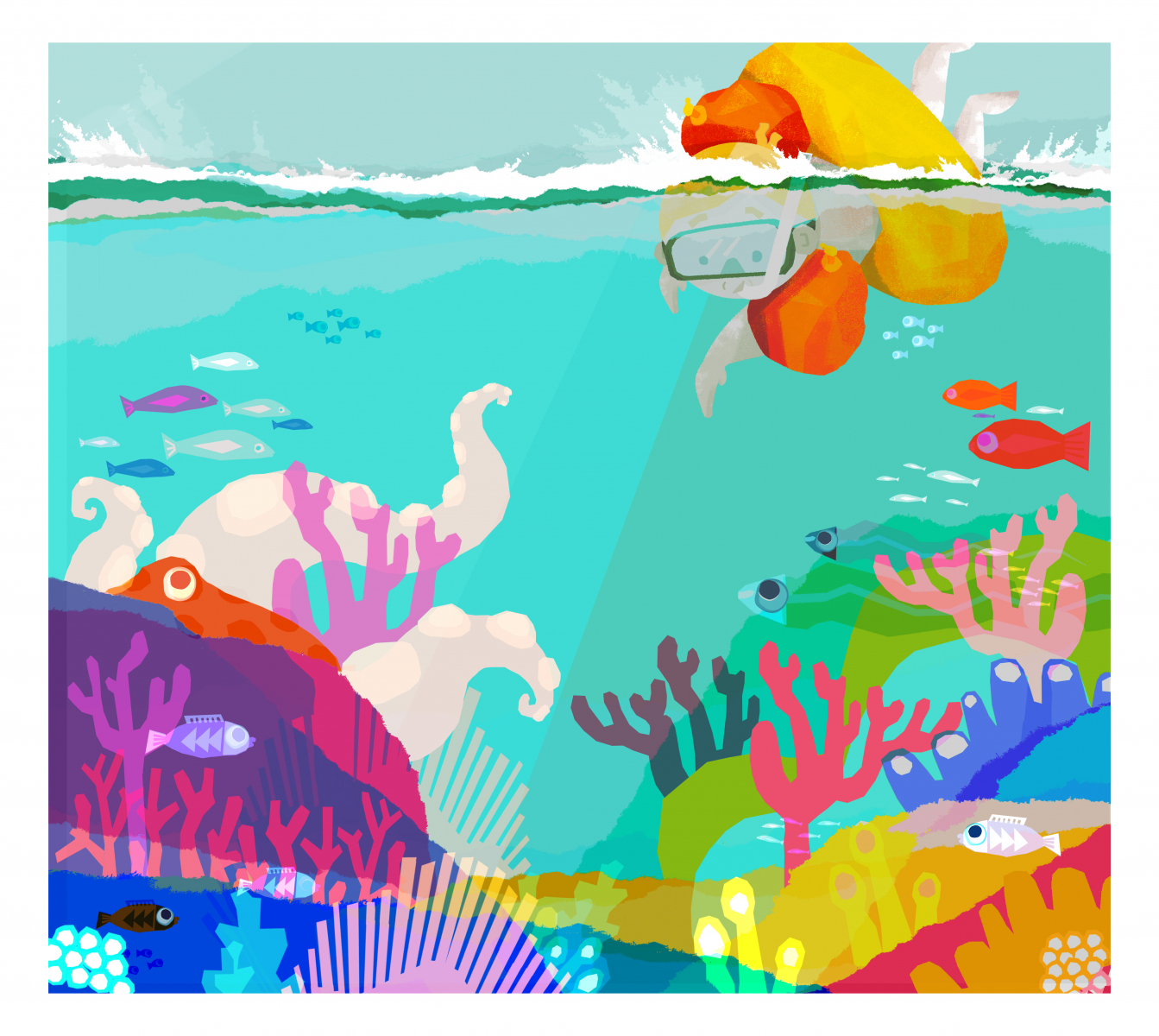 Ilustrácia Hedvigy M. Gutierrez v jej autorskej knihe Pod hladinou, 2023, digitálna ilustrácia (foto: archív Hedviga M. Gutierrez)