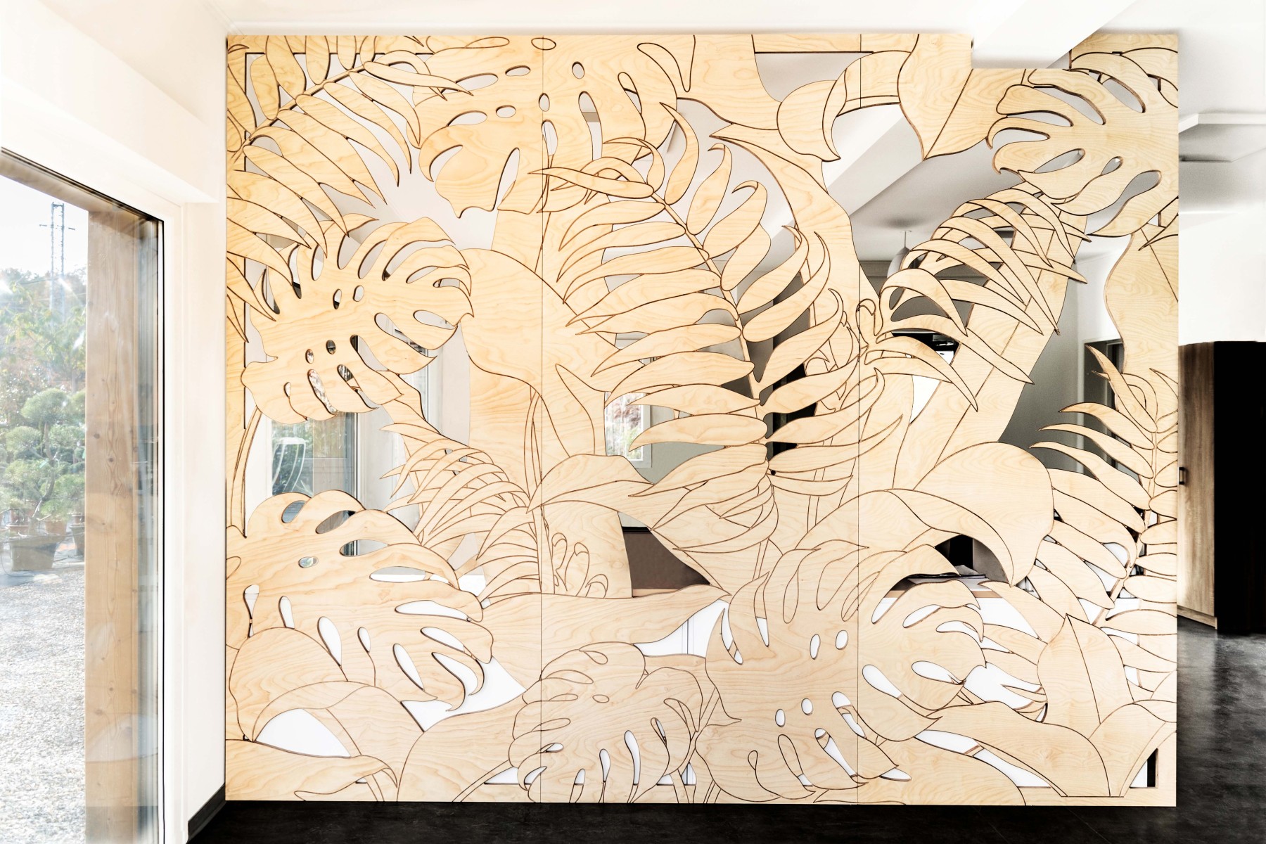 Návrh predeľovacej steny do kancelárií Záhradného centra Zahradnici.sk, 2022, Oščadnica. Interiér bol realizovaný Tatianou Gajdošovou – HOME UP DESIGN v spolupráci so štúdiom Millhill z Banskej Štiavnice. (foto: firma Millhill)