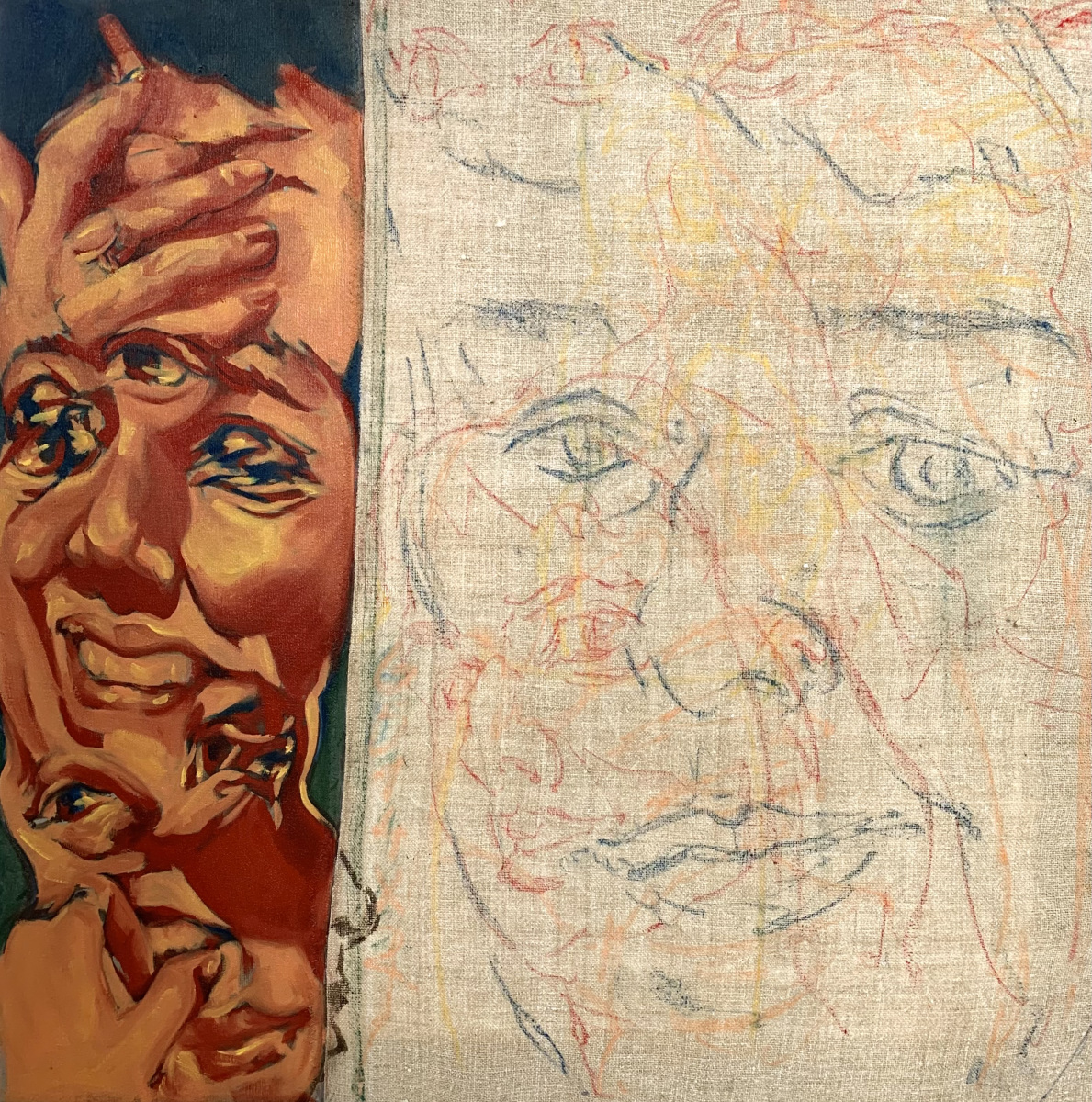 Jakub Mlynarčík: Threersona, 2023, olej na plátne, 25×25 cm (foto: archív Jakub Mlynarčík)