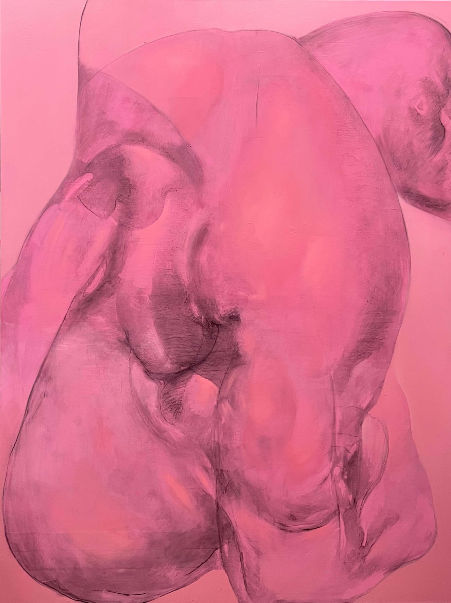 Jakub Mlynarčík: Pink One, 2024, kombinovaná technika – akryl, prírodný uhoľ, olej na plátne, 150x200 cm (foto: archív Jakub Mlynarčík)