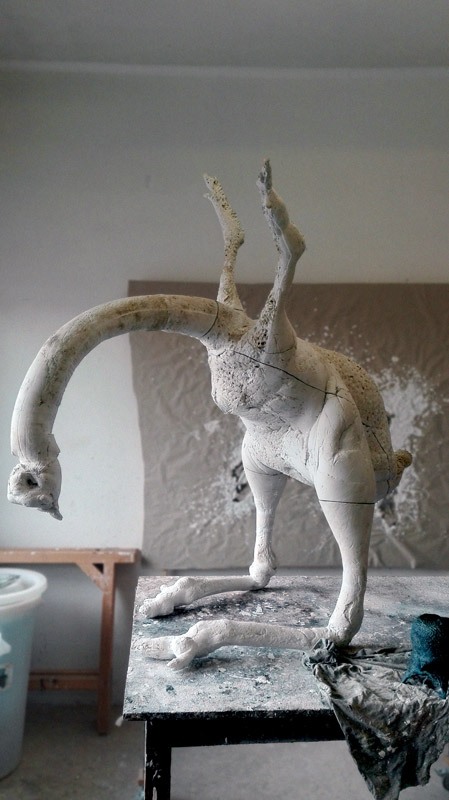 Vo Vašom portfóliu sa nachádzajú v značnej miere okrem ľudí aj zobrazenia zvierat. Tu spomeniem plastiky z cyklu Hľadám podstatu, ktoré sú zaujímavé svojim technologickým postupom, akým vznikali. Môžete ten postup priblížiť?