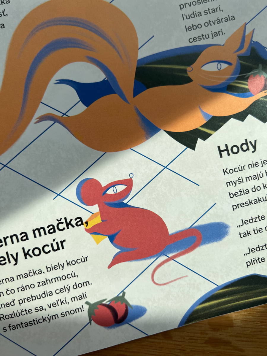 Ilustrácia Kateřiny Morgenstein v knihe Tri mačiatka od Jozefa Kollára, 2022, digitálna ilustrácia (foto: archív Kateřina Morgenstein)