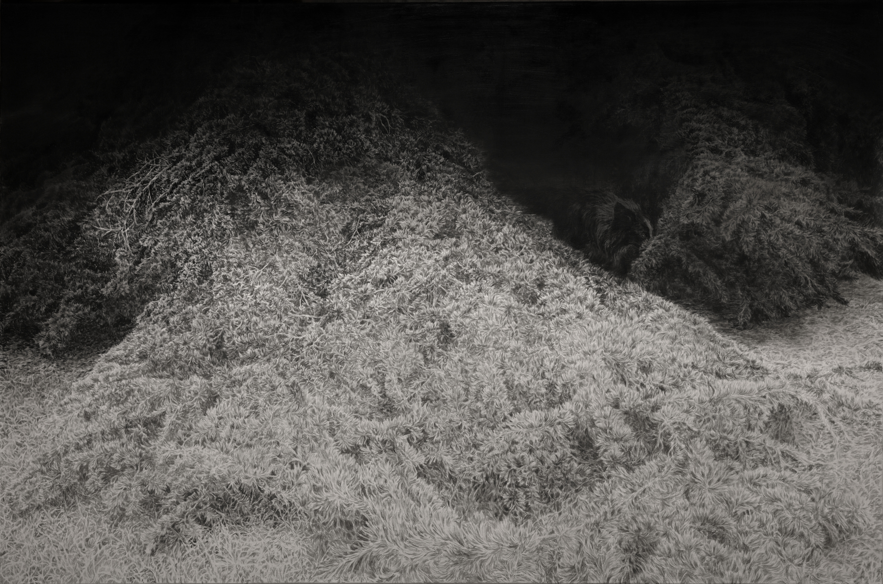 Tajné místo, 2023, tuš na plátne, 220x145 cm (foto: archív Lenka Falušiová)
