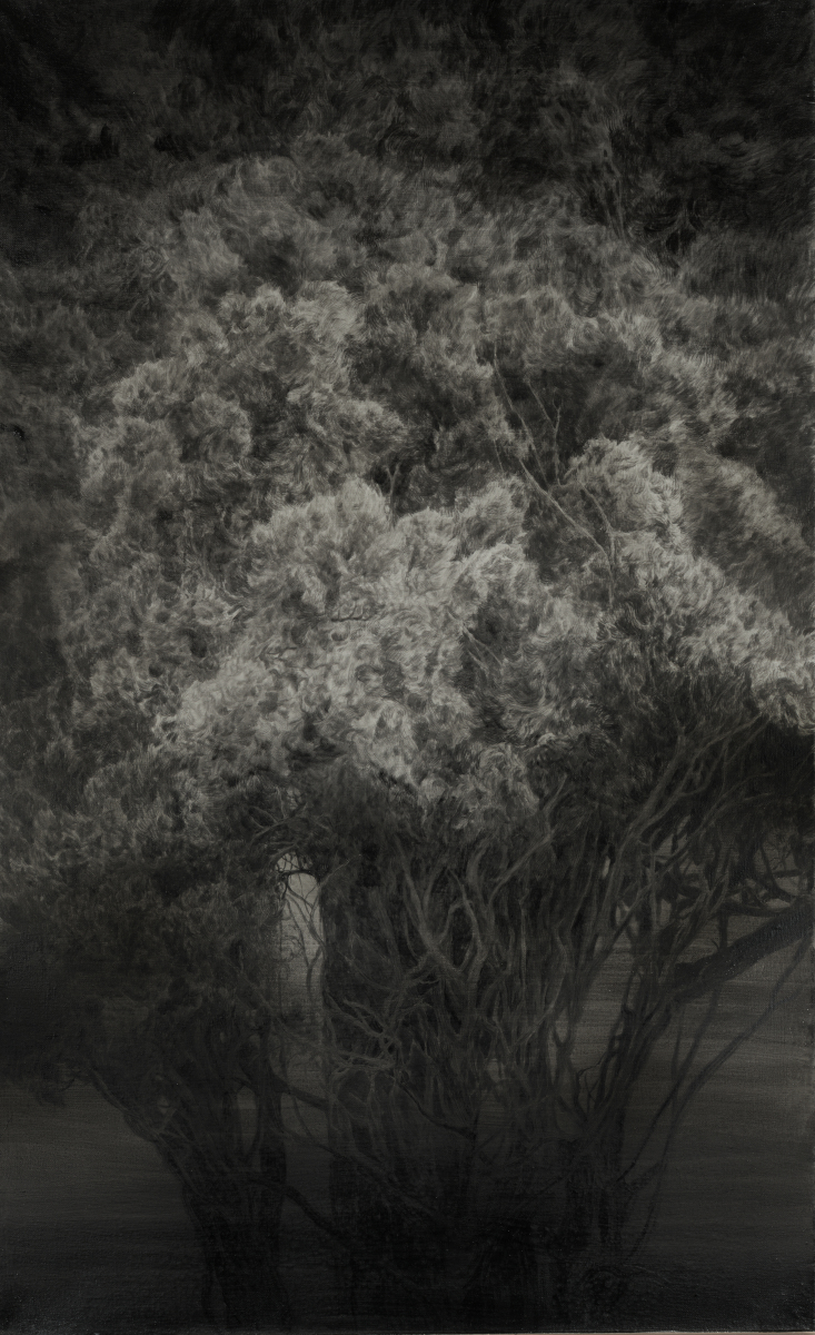 Väčšina mojich vízií je kreslená po pamäti. Ide mi o sprítomnenie vecí neviditeľných. Stromy majú len v obrysoch reálny tvar, ale vnútri sa odohráva iný príbeh – nereálne napojenie vetiev, ktoré vytvárajú dojmy iných bytostí, v lese ukrytých. Čerpám len zo spomienok na krajinu. Občas sa mi prepojí niekoľko spomienok naraz.