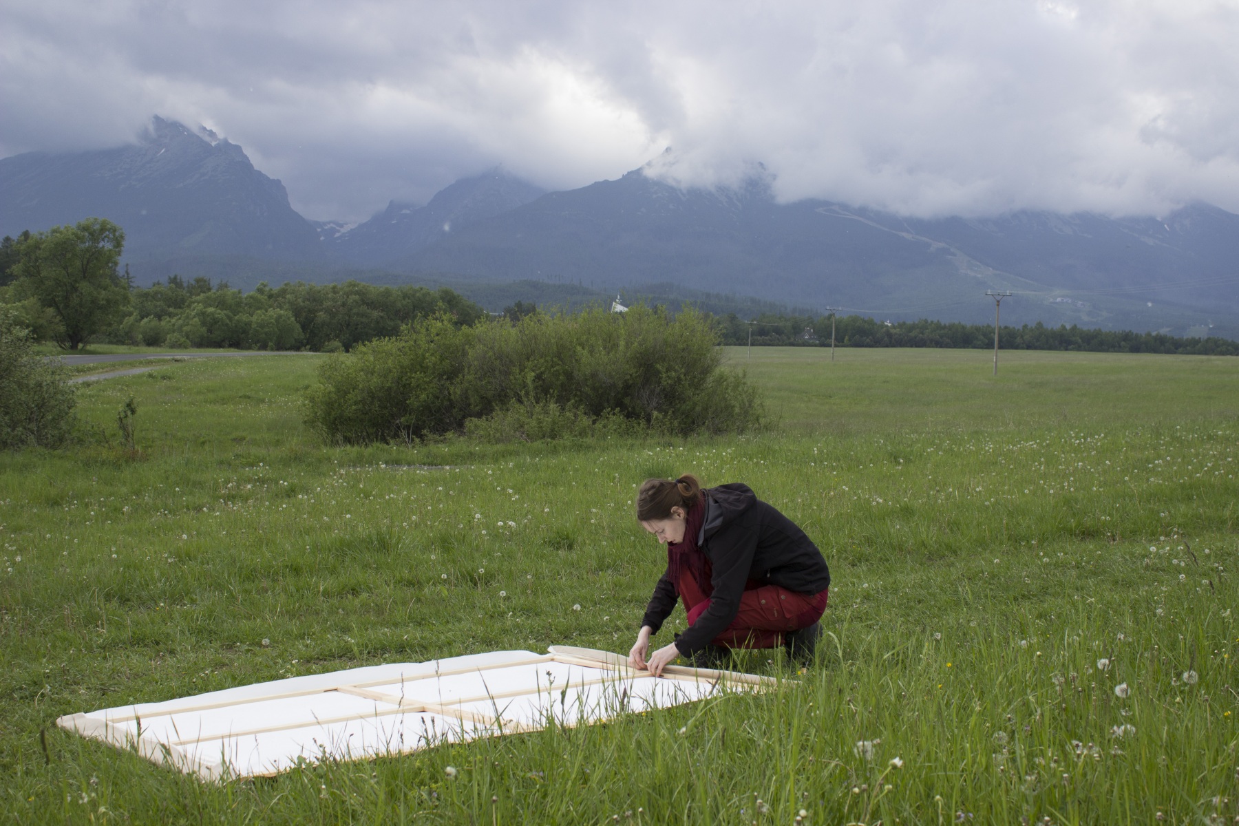 Zorganizovanie tejto „akcie“ je však niekedy veľmi náročné. Nie raz sa mi stalo, že som šliapala do strmého kopca s plátnom, stojanom a ťažkým batohom plným farieb asi hodinu (niekedy aj viac). Na miesto som prišla vyčerpaná, ťažšie sa potom hľadala energia na maľovanie. Chvíľu som maľovala. Potom ma predčasne vyhnala nepriazeň počasia. Navyše v prípade väčších formátov musím myslieť aj na to, ako sa dopravím na miesto so všetkým materiálom – s lištami, plátnom, veľkým stojanom, a tiež kde budem odkladať plátno, keďže pracujem na etapy. Chodím teda po okolitých chatách a pýtam sa miestnych, či si u nich dočasne nemôžem odkladať obraz. Tiež niektoré strety s ľuďmi mi nie sú veľmi príjemné. Rada pracujem o samote, v kľude.