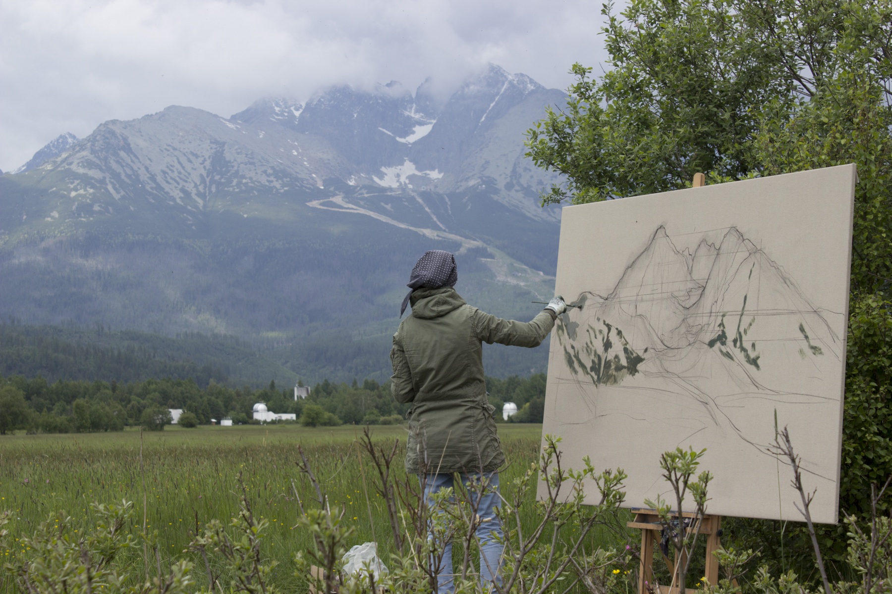 Zorganizovanie tejto „akcie“ je však niekedy veľmi náročné. Nie raz sa mi stalo, že som šliapala do strmého kopca s plátnom, stojanom a ťažkým batohom plným farieb asi hodinu (niekedy aj viac). Na miesto som prišla vyčerpaná, ťažšie sa potom hľadala energia na maľovanie. Chvíľu som maľovala. Potom ma predčasne vyhnala nepriazeň počasia. Navyše v prípade väčších formátov musím myslieť aj na to, ako sa dopravím na miesto so všetkým materiálom – s lištami, plátnom, veľkým stojanom, a tiež kde budem odkladať plátno, keďže pracujem na etapy. Chodím teda po okolitých chatách a pýtam sa miestnych, či si u nich dočasne nemôžem odkladať obraz. Tiež niektoré strety s ľuďmi mi nie sú veľmi príjemné. Rada pracujem o samote, v kľude.