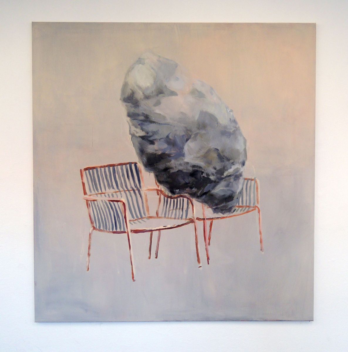 Na výstave Dobrodružná situácia v trnavskej Synagóge si rozvíjala tému medziľudských vzťahov vo viacerých médiách. Okrem maľby sa tam objavili fotografie, objekty, či video. Vo veľkorozmerných abstraktných maľbách znázorňuješ i neurčité krajinné horizonty zahalené v hmle. Ako by si tieto obrazy asociovala s medziľudskými vzťahmi?