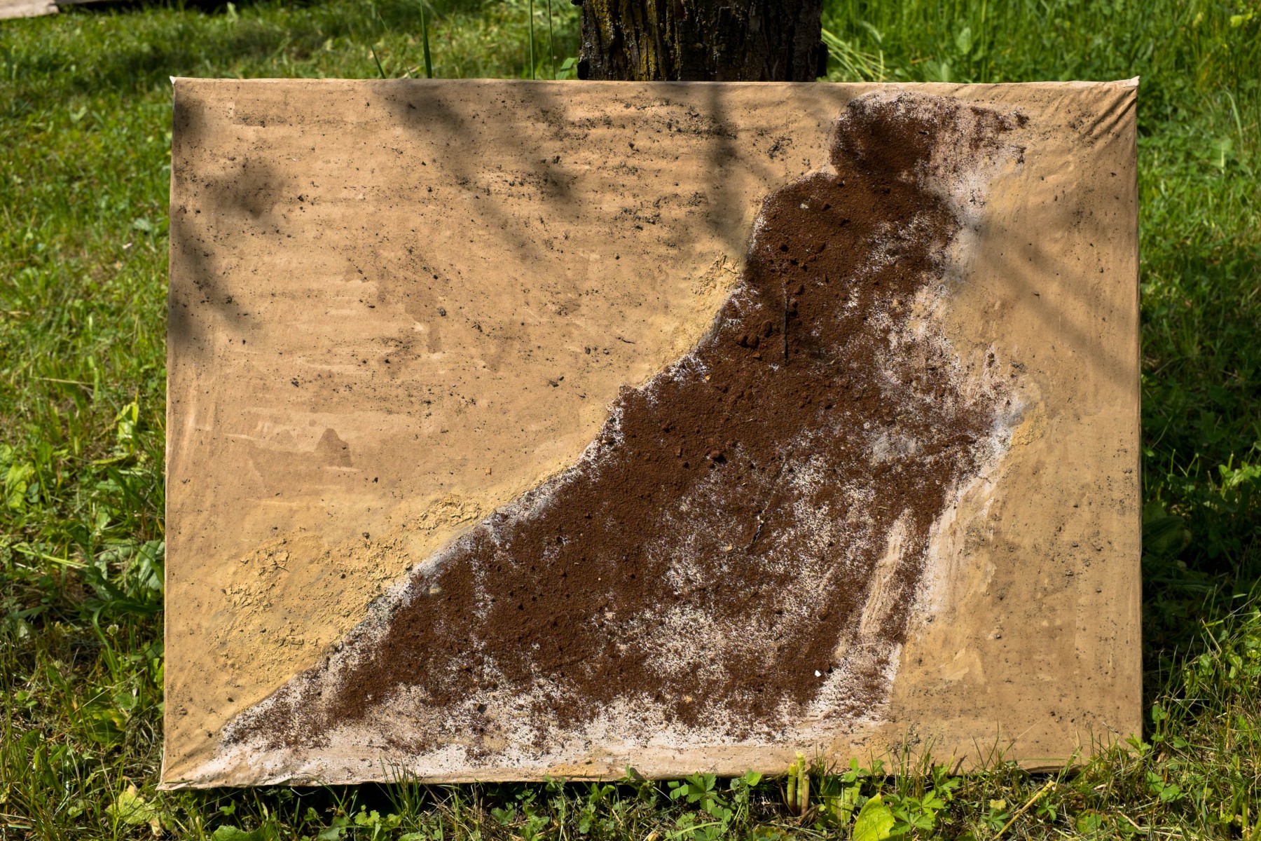 Bez názvu, 2018, hlina a odpad z kávy lepený múkou na papieri, cca 75x50 cm (foto: Martin Deči)