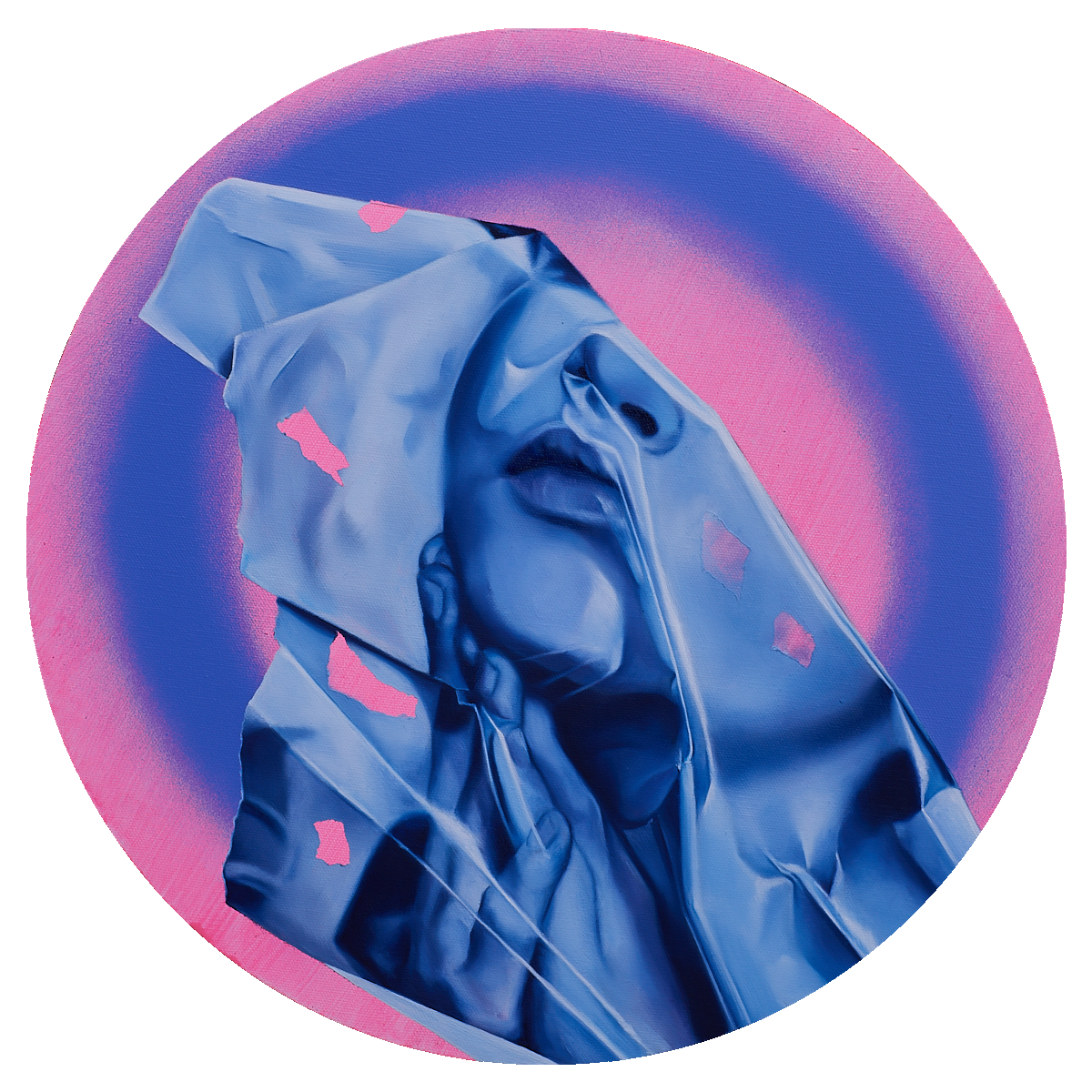 Magdalen,2020, olej a sprej na plátne, ø 40cm (foto: Dorota Holubová)