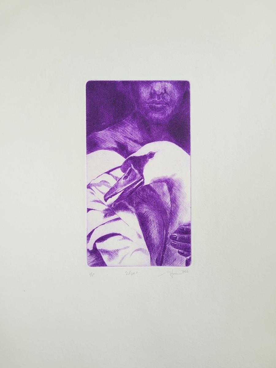 Martina Rötlingová: Léda, 2022, suchá ihla, 22×32 cm (foto: archív Martina Rötlingová)