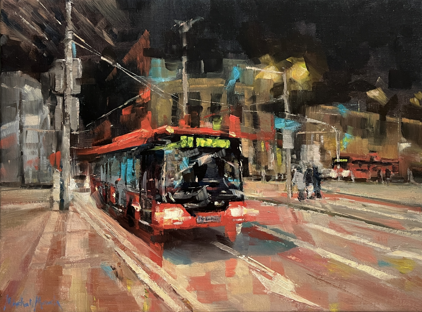 Môžete povedať niečo o Vašich dielach z mestského prostredia, kde znázorňujete červené bratislavské električky?