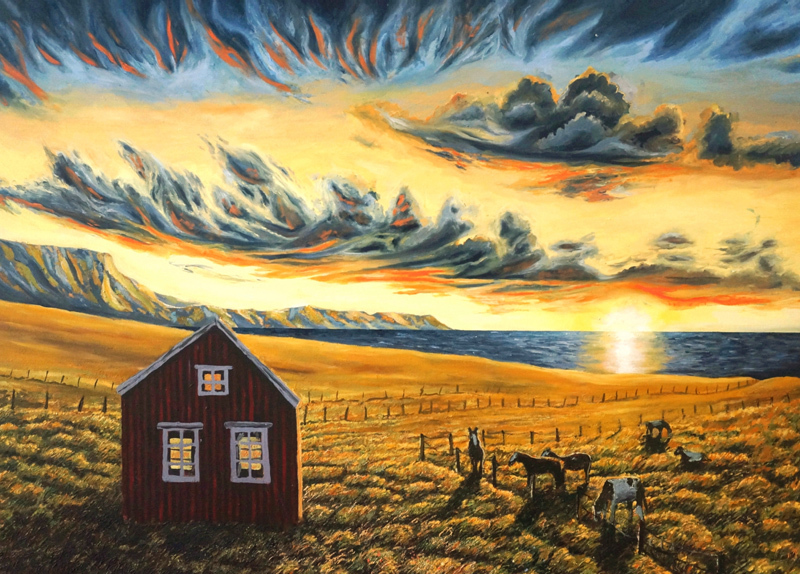 Inšpiruje ma mnoho miest. Okolo roku 2020 to bol Island – „Dom v zlatom poli trávy“, „Lávové pole“. Potom rôzne časti Nórska. Mám diela inšpirované jeho hornatým stredom, ako napríklad „Horská skrýša“(Gaupne), „Jazyky snehu“, „Tvár ľadovca“(Flatbrehytta), „Na konci fjordovej doliny“ (imaginatívne miesto), „Letné plávanie“(Gaupne); i severom, napríklad môj minuloročný obraz „V myšlienkach“, ktorý som vytvorila po návšteve lokality Bodø.