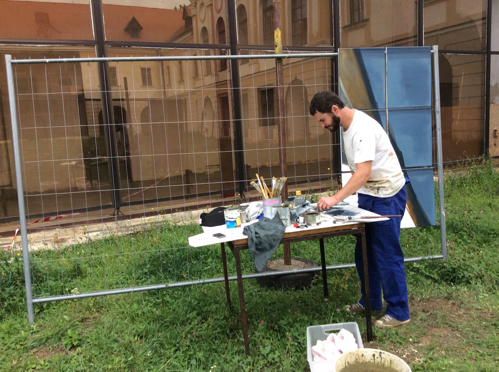Z procesu prác na cykle Deformácie architektúry, 2017, Tovarnícky kaštieľ, Topoľčany (foto: Irbis Inocent)