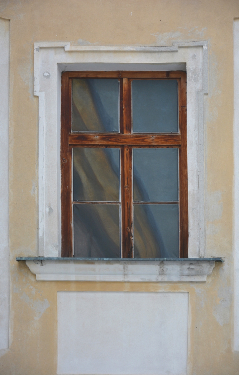 Zaujímal som sa o deformácie architektúry v prostredí historickej budovy kaštieľa. Tam vznikla séria malieb na základe okien, ktorých nerovnomerne odliate sklá deformovane zrkadlia okolitú architektúru. Každé okno pozostávalo zo šiestich formátov, ktoré spolu tvorili celok – jednu maľbu. Zameral som sa na zobrazenie fragmentu, ako aj väčšieho celku – fasády. Hotové maliarske výstupy som nainštaloval do samotných okien kaštieľa, čím vznikol efekt optickej ilúzie (trompel’oeil). Touto prácou som si chcel skúsiť maliarsky presah, intervenciu vo verejnom priestore, overiť si možnosti trompel’oeil, ale i získať novú skúsenosť v rámci inštalácie.