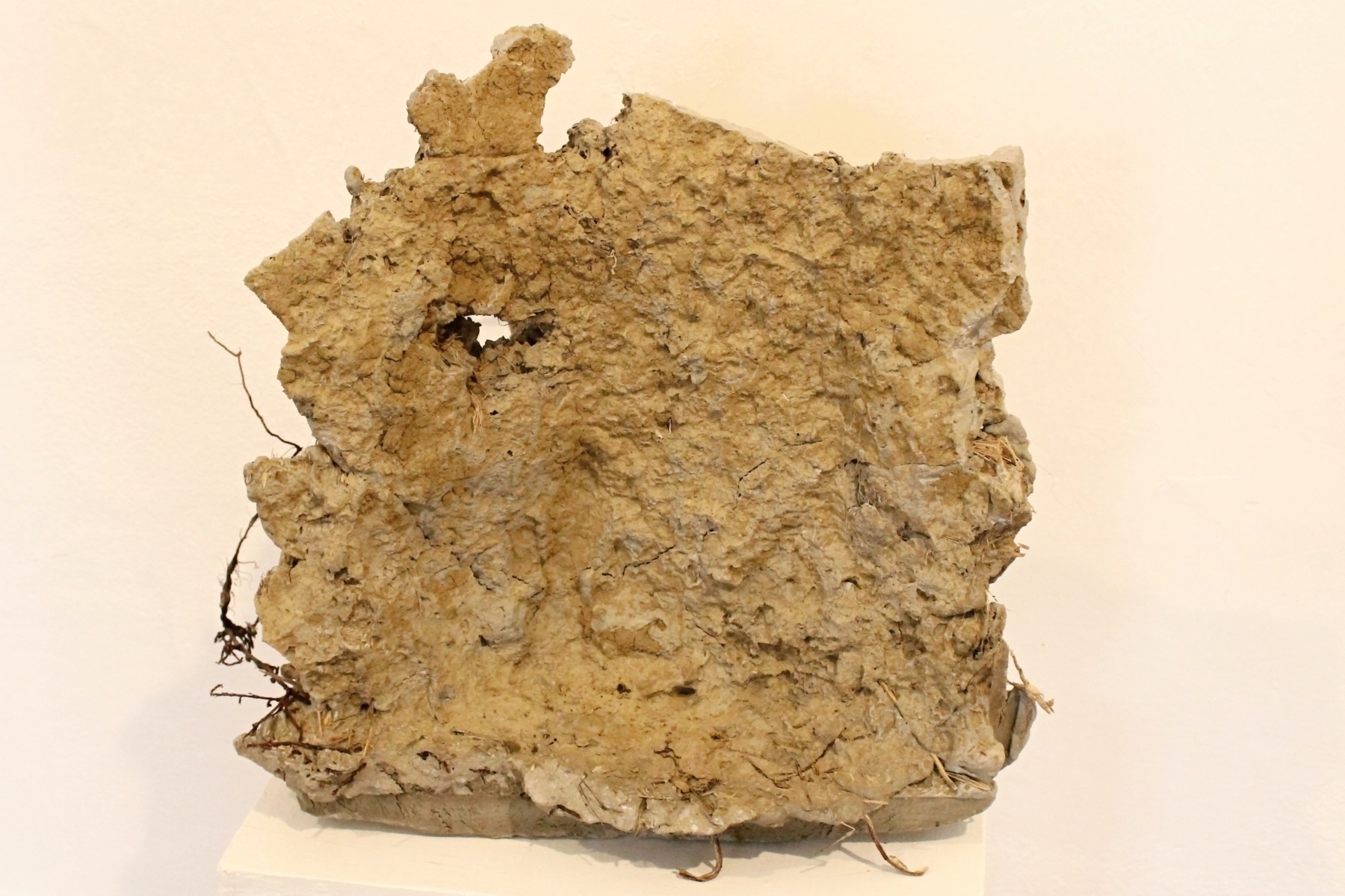 Peter Králik, Praskliny (séria), 2018, objekty – betónové odliatky prasklín v zemi, ktoré sa vytvorili suchom, 50x30x40 cm (foto: archív Peter Králik)