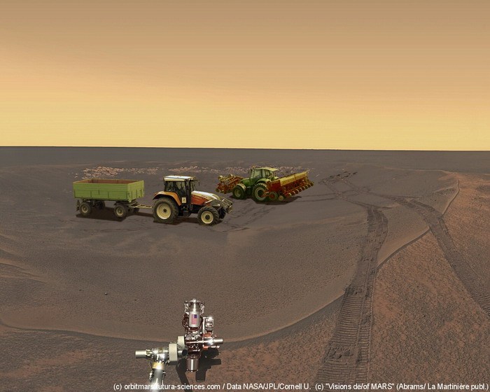 Plochy na Marse sú však vízia. Tak, ako každý v dnešnej dobe rozmýšľa a hľadá  život inde ako na Zemi, tak som to zobral cez ten môj rukopis. Na pozadí vtipu, ale aj vážnosti, tu dominuje stroj bez človeka, ktorý si išiel len tak posiať pšenicu na Mars.