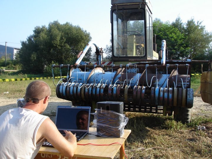 V roku 2011 som použil stroj trochu ináč. Urobil som arénu, kde som spolu s kamarátom (mali sme hudobný projekt) hral oproti naštartovanému kombajnu. Využívali sme pritom rytmus zvuku.