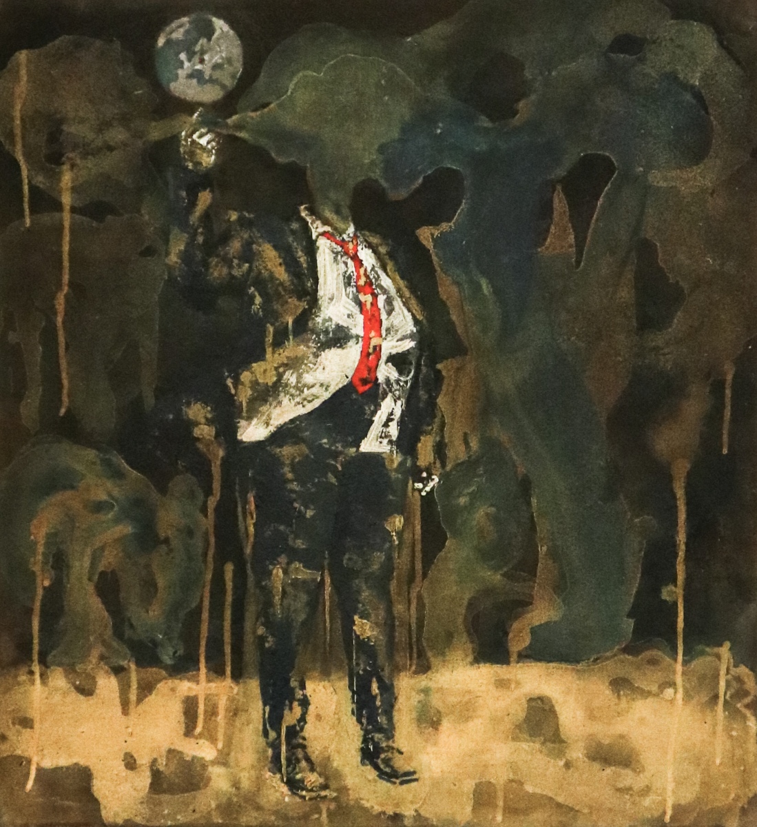Všetky škvrny na obrazoch, či červené, šedé alebo bledé, majú rovnaký význam a to, že tvoria fragmenty zobrazenej figúry a zdeštruovaného prostredia,  ktoré nás obklopuje.