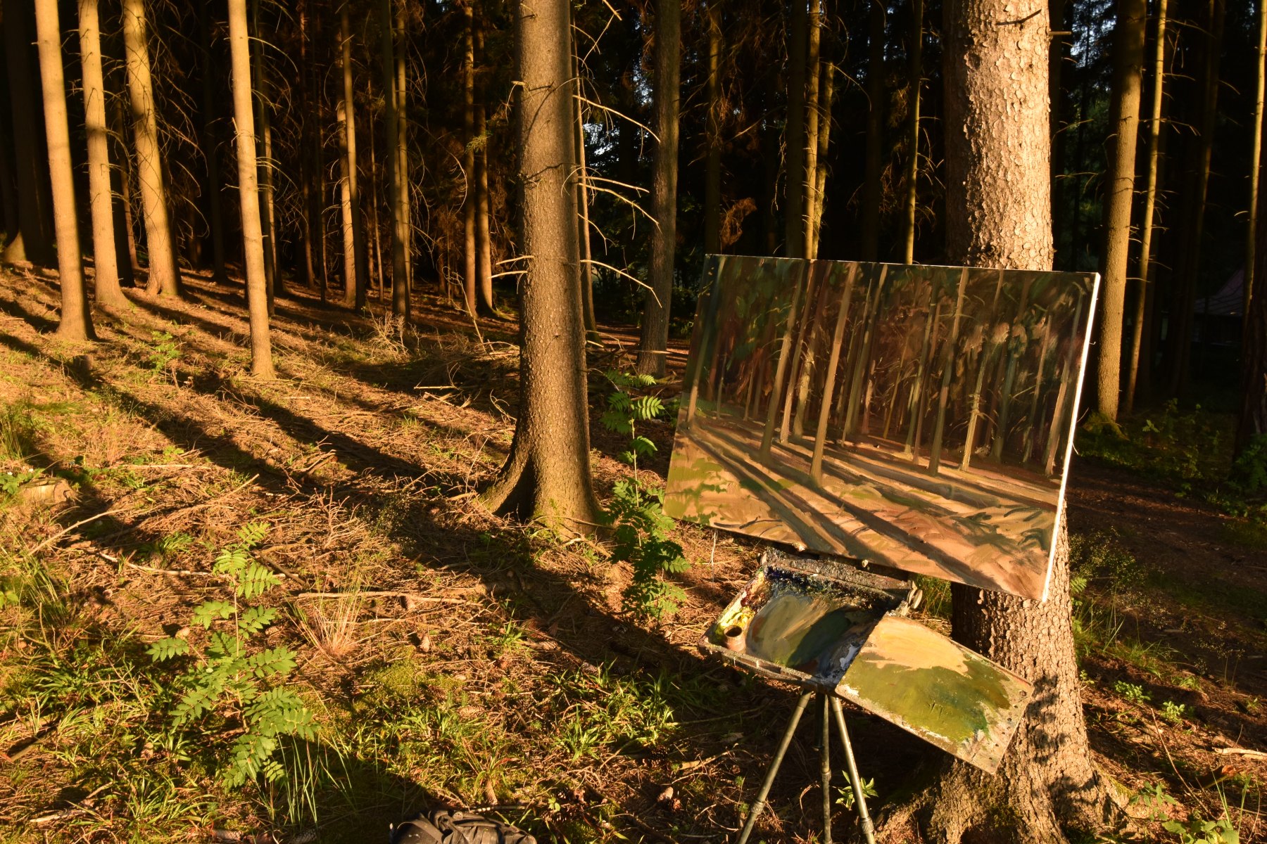 Podmienky, v ktorých maľujete, zanechajú na obrazoch otlačok. Keď do plátna napríklad sneží, tak sa farby chovajú inak, snehové vločky vytvoria textúru, olej v nízkej teplote tuhne, máte zmrznuté prsty, tlačí vás čas. Zakaždým maľujete trochu inak, lebo sa ani vnútorne necítite vždycky rovnako. A z obrazu to potom cíti i divák. Rovnako to je s dažďom, horúčavou, ľuďmi, ktorí okolo vás chodia, hmyzom, tmou a čímkoľvek ďalším, čo sa v plenéri môže stať. Všetko tak na tých obrazoch nájdete. V ateliéri niečo tak autentické docieliť nejde.