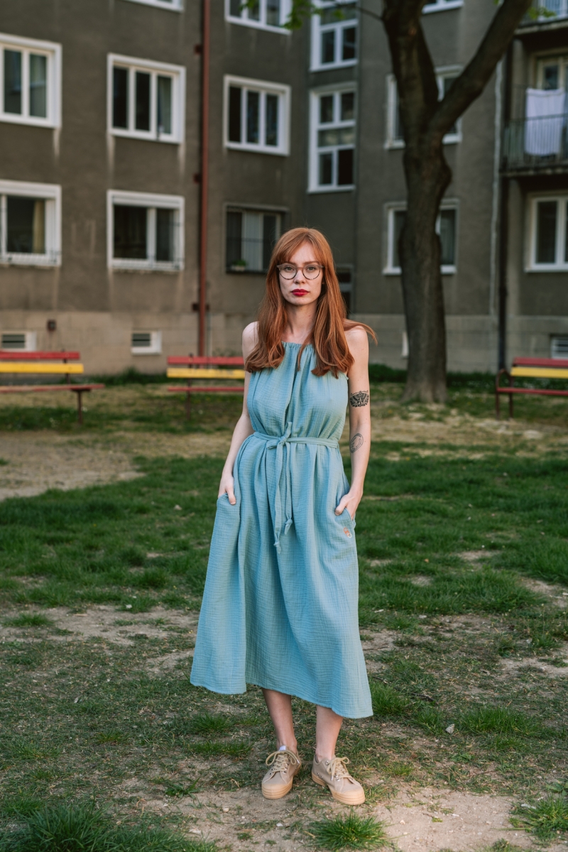 Letníčky – dámske mušelínové šaty z kolekcie kamoši z milej ulice, jar-leto 2022, organická bavlna (foto: mile.sk)