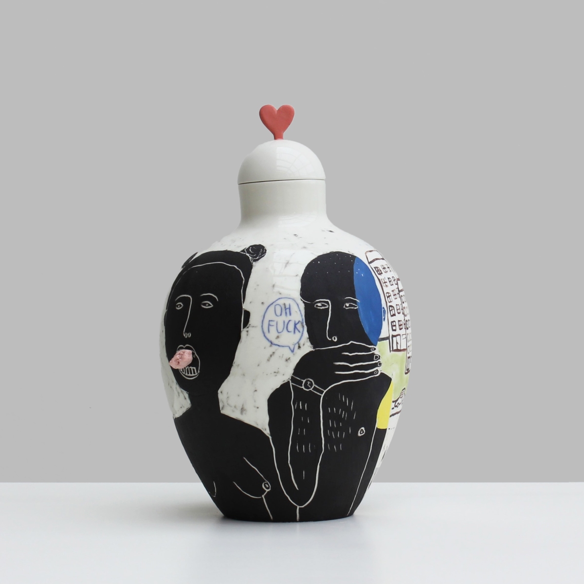 Ako sme už spomínali, venujete sa keramike – vyrábate netradičné maľované vázy. Využívate okrem maľby na ne aj samotnú keramiku – tvar vázy na to, aby ste poukázali na témy, ktorým sa v tvorbe venujete? Ak áno, ako?
