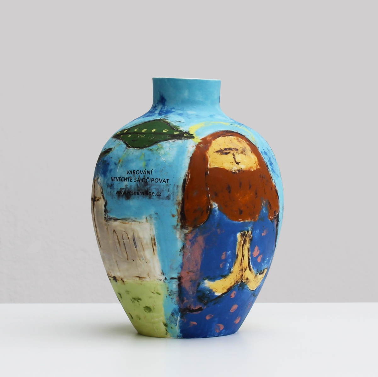 Ako sme už spomínali, venujete sa keramike – vyrábate netradičné maľované vázy. Využívate okrem maľby na ne aj samotnú keramiku – tvar vázy na to, aby ste poukázali na témy, ktorým sa v tvorbe venujete? Ak áno, ako?