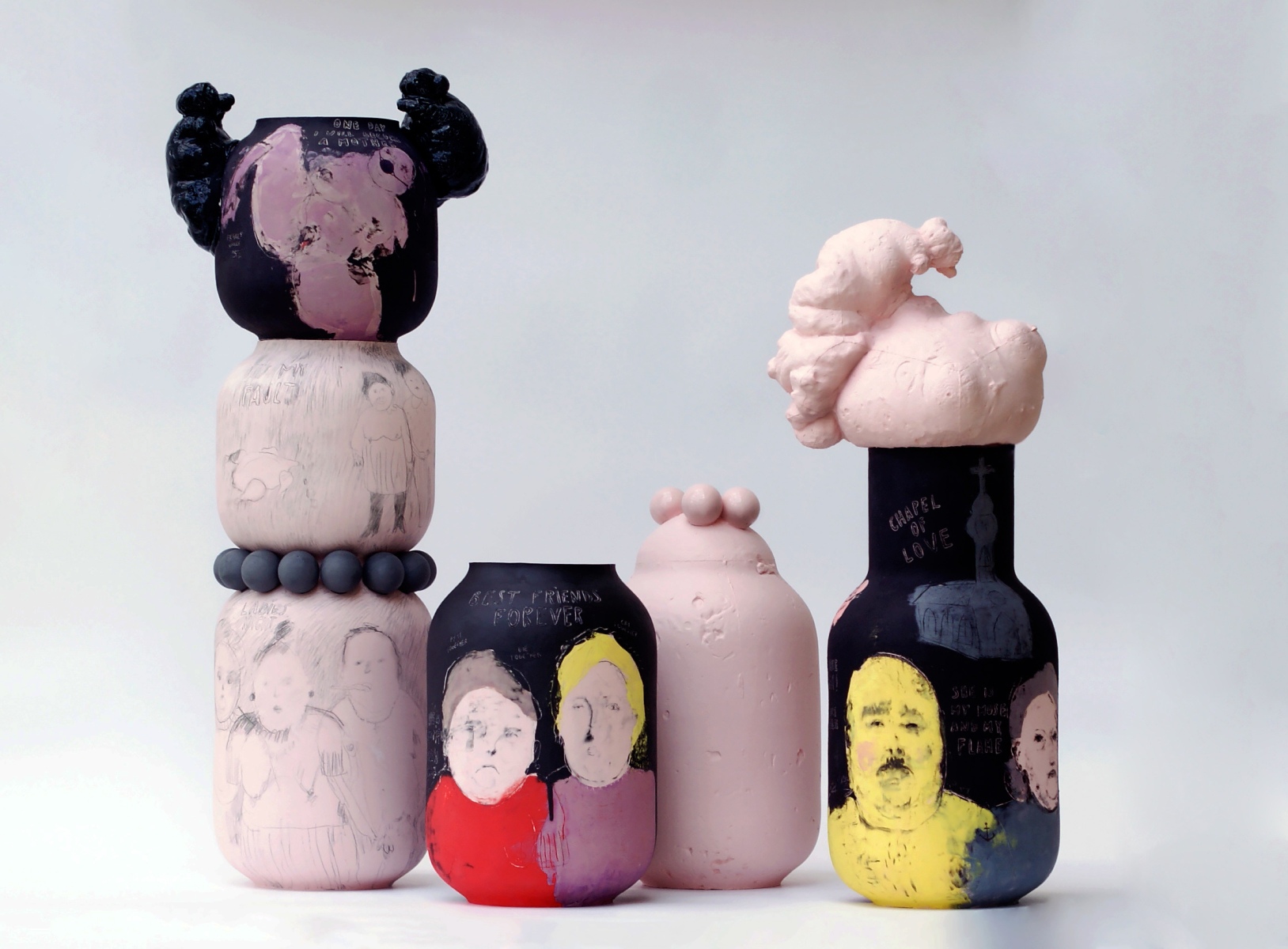 Ako sme už spomínali, venujete sa keramike – vyrábate netradičné maľované vázy. Využívate okrem maľby na ne aj samotnú keramiku – tvar vázy na to, aby ste poukázali na témy, ktorým sa v tvorbe venujete? Ak áno, ako?