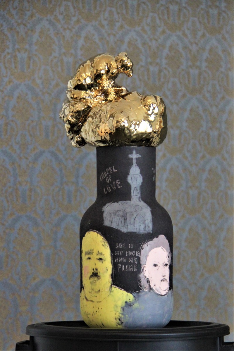 Ako sme už spomínali, venujete sa keramike – vyrábate netradičné maľované vázy. Využívate okrem maľby na ne aj samotnú keramiku – tvar vázy na to, aby ste poukázali na témy, ktorým sa v tvorbe venujete? Ak áno, ako?