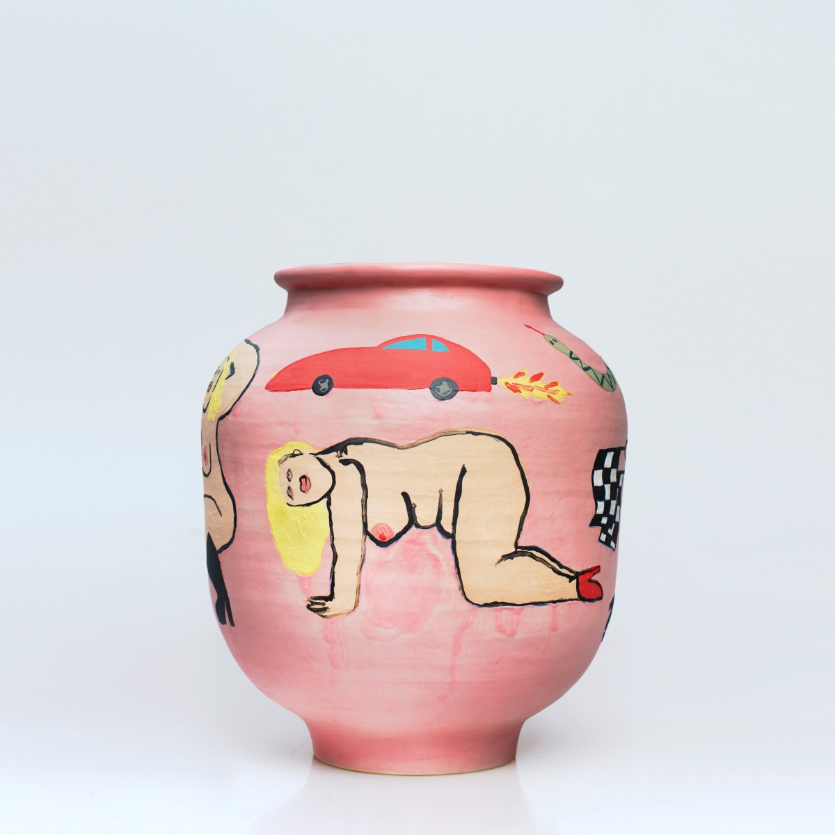 Ako sme už spomínali, venujete sa keramike – vyrábate netradičné maľované vázy. Využívate okrem maľby na ne aj samotnú keramiku – tvar vázy na to, aby ste poukázali na témy, ktorým sa v tvorbe venujete? Ak áno, ako?